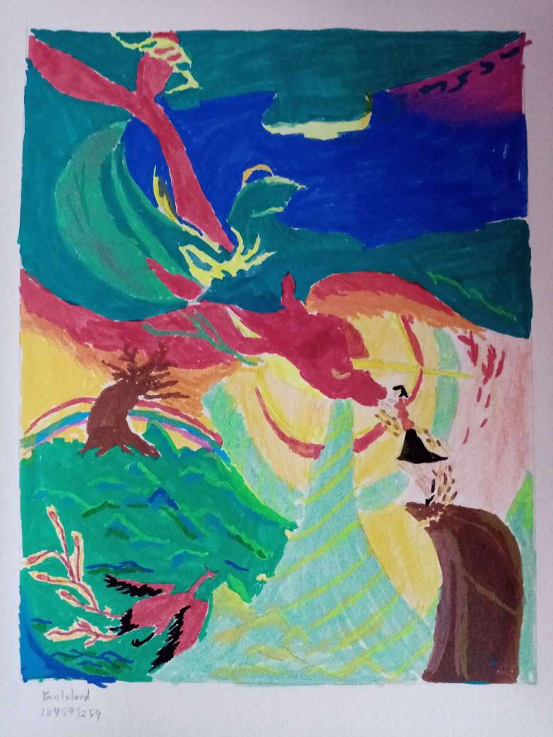 过程↓#五彩缤纷 #大鱼海棠 这儿童画的画风啊,尽力了上色用的是48色水彩笔and彩铅主色调——绿用时:三小时