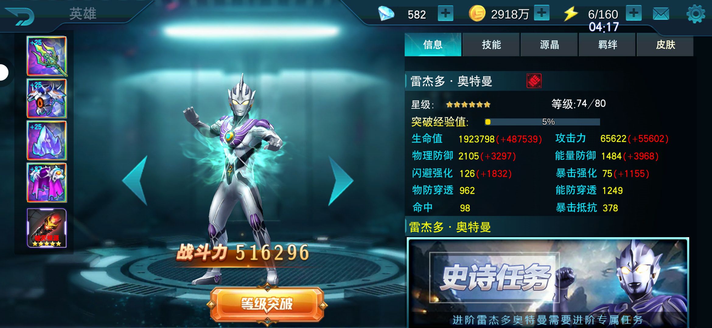 我的战力终于突破150万了