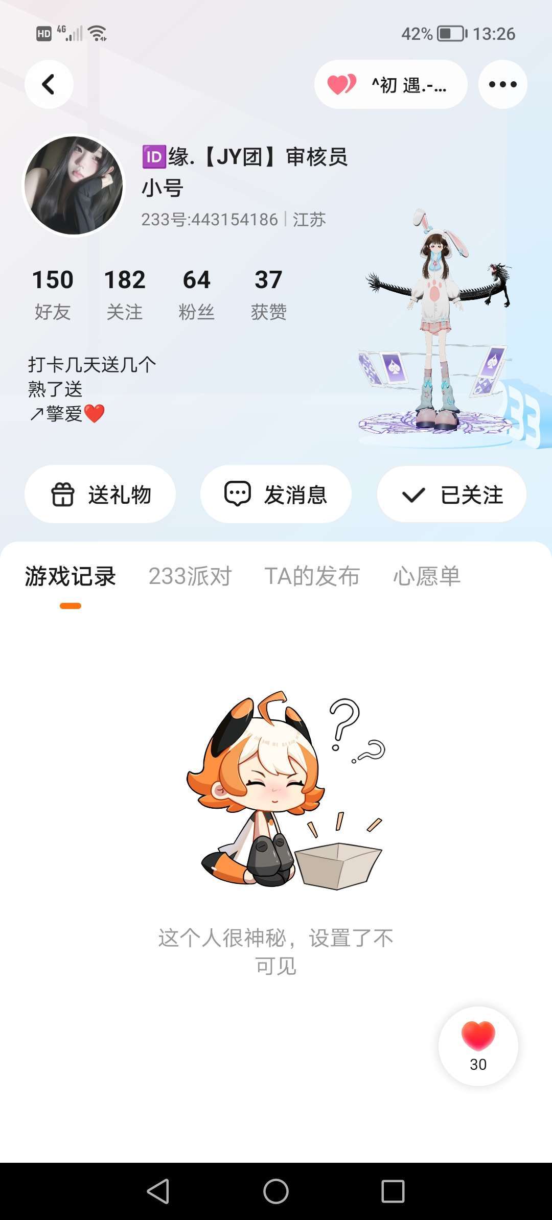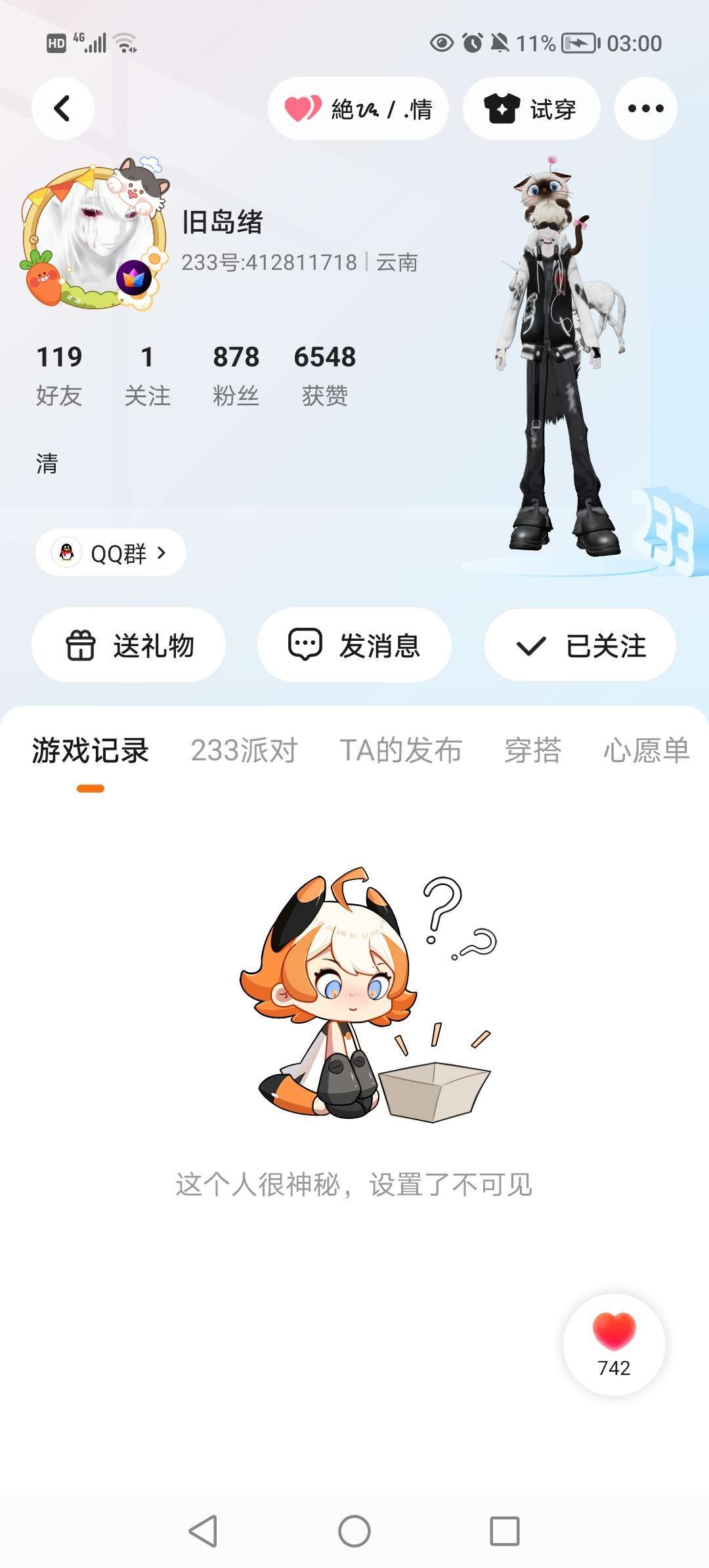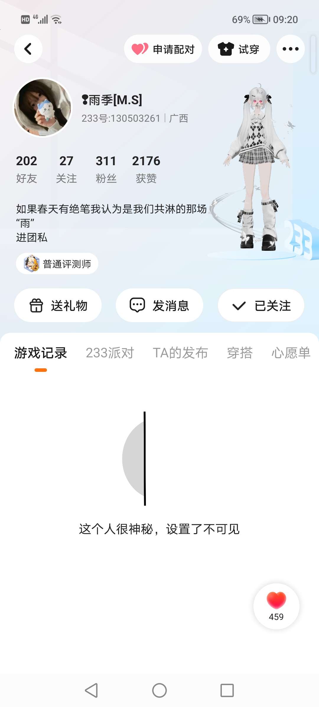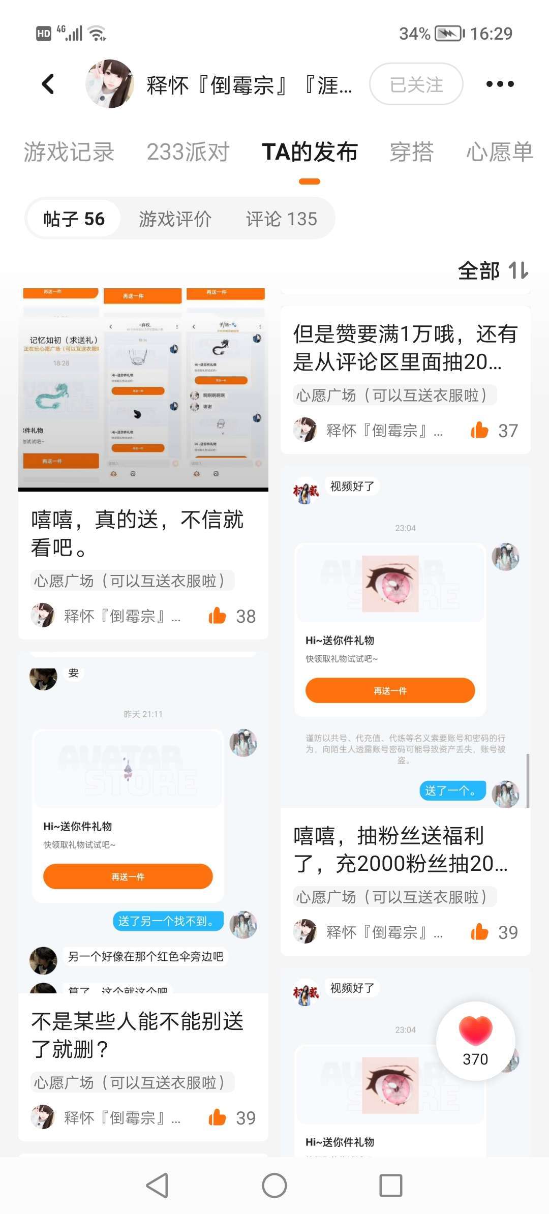 #宣传大佬 嘿嘿~这个大佬好友说送就送了 人真嘟很好~去关注他有可能会送 (因为他是在心愿广场里送的当时我有点激动没截到屏哈~)