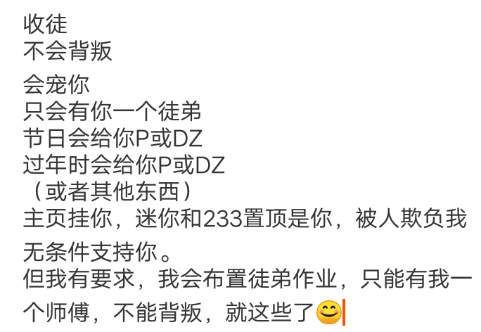 找徒弟了啦🎉是有见面礼的,能宠,能帮你涨粉,但想做我徒弟也是有要求的: