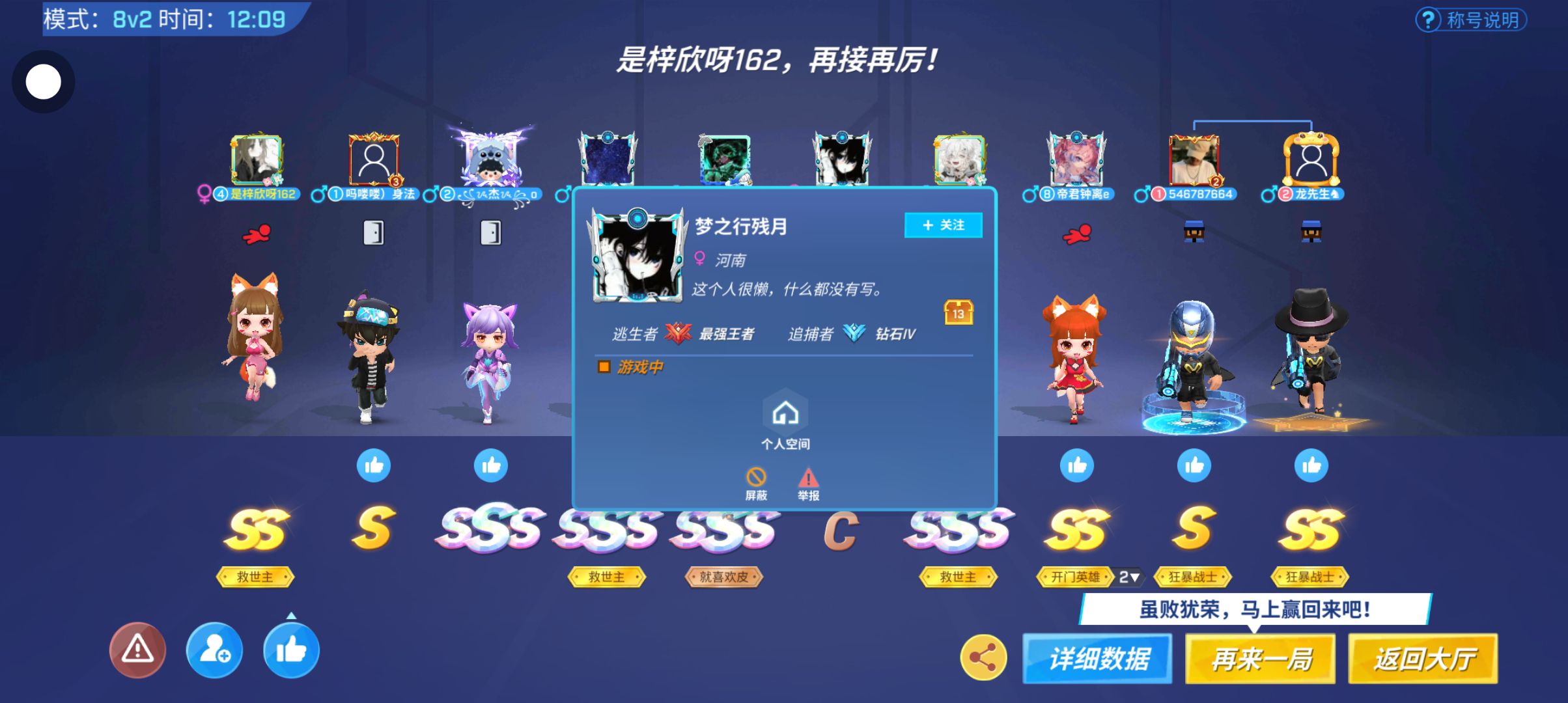 混分的3个队友一局嘎n回,也不开门追捕的段位低的离谱...