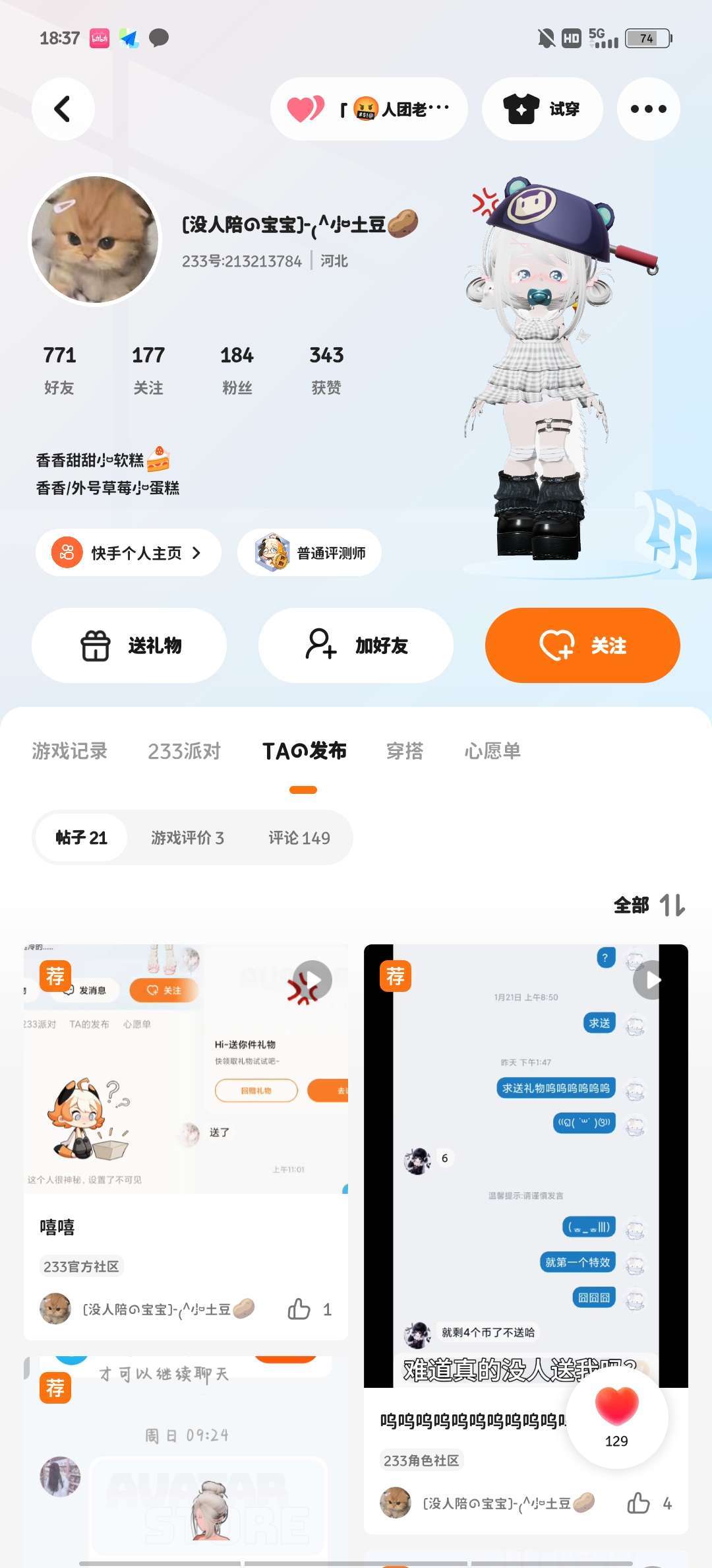 低龄魔怔人 成分复杂 糖分超标 详细人品可看她帖子评论 主打的就是一个死皮赖脸要礼物,要到了发个帖子意思一下,没要到直接不装了