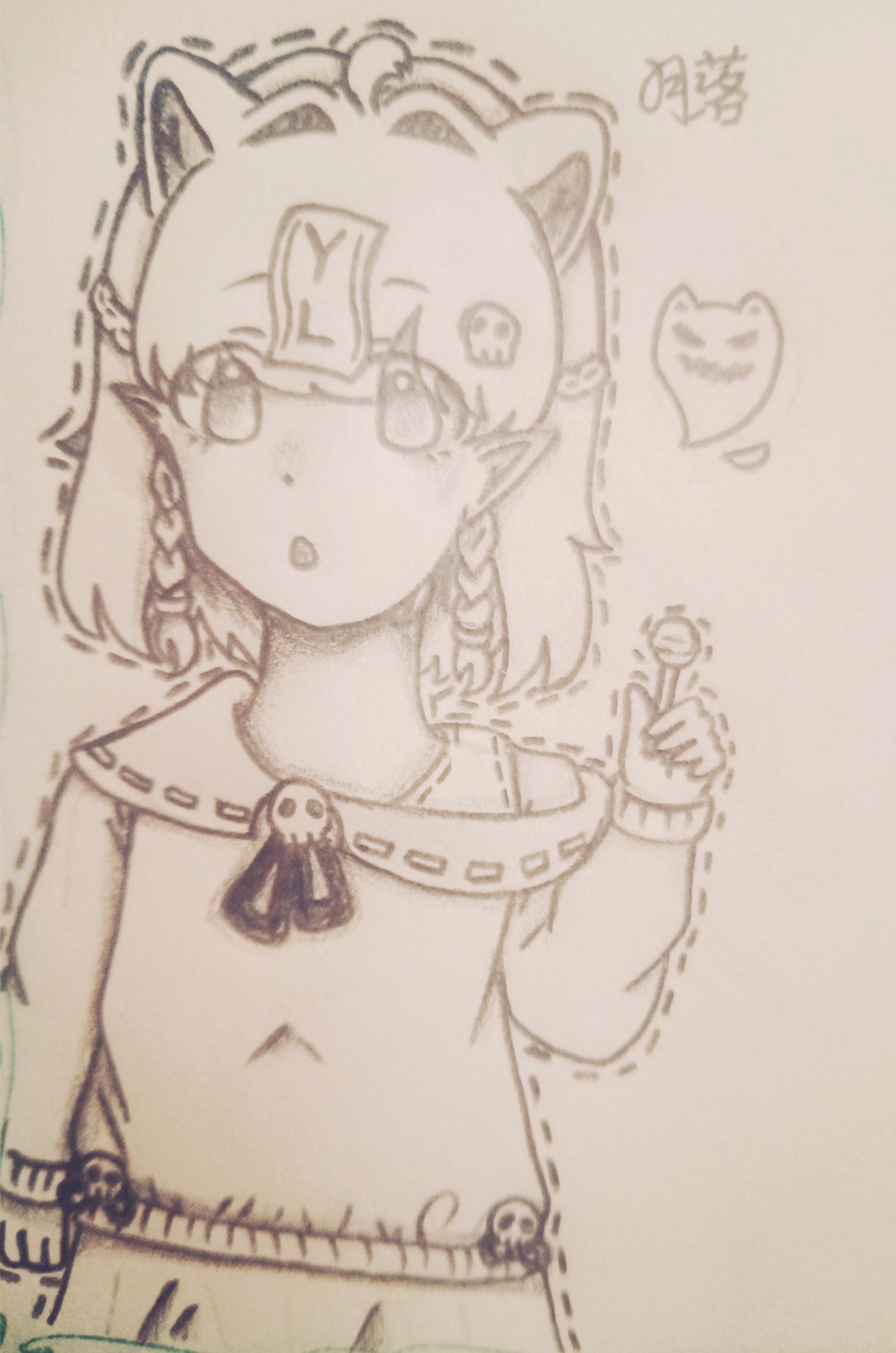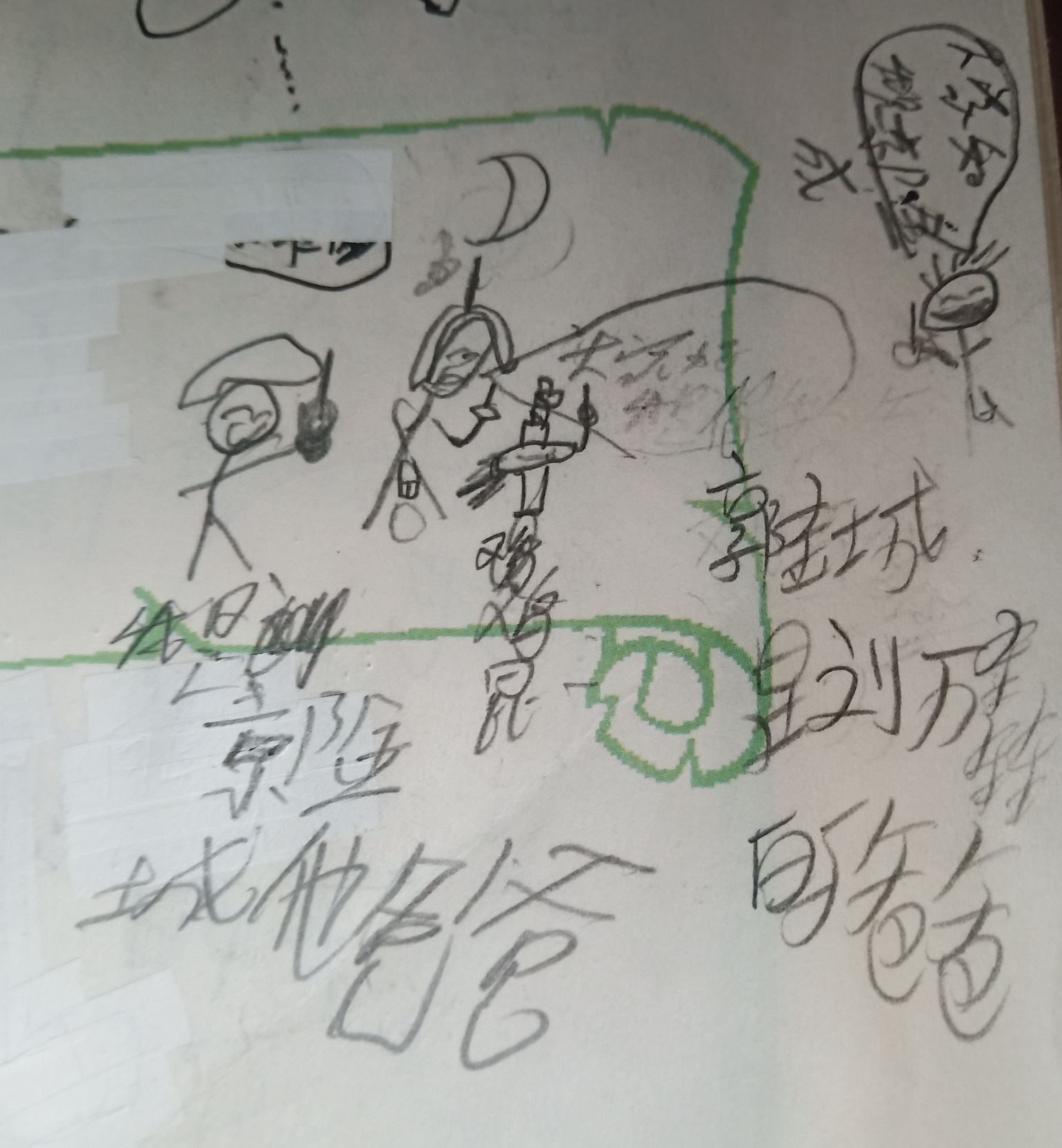 老师在上面讲,是叫我在下面画画,不小心画到了试卷上,老师说没事儿,每天交一张画