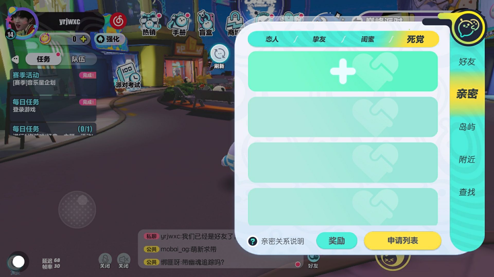 找蛋塔子,可以陪我跑图,本人不是很喜欢玩派对,比较喜欢玩地图🌚️(可处关系,除了恋人)