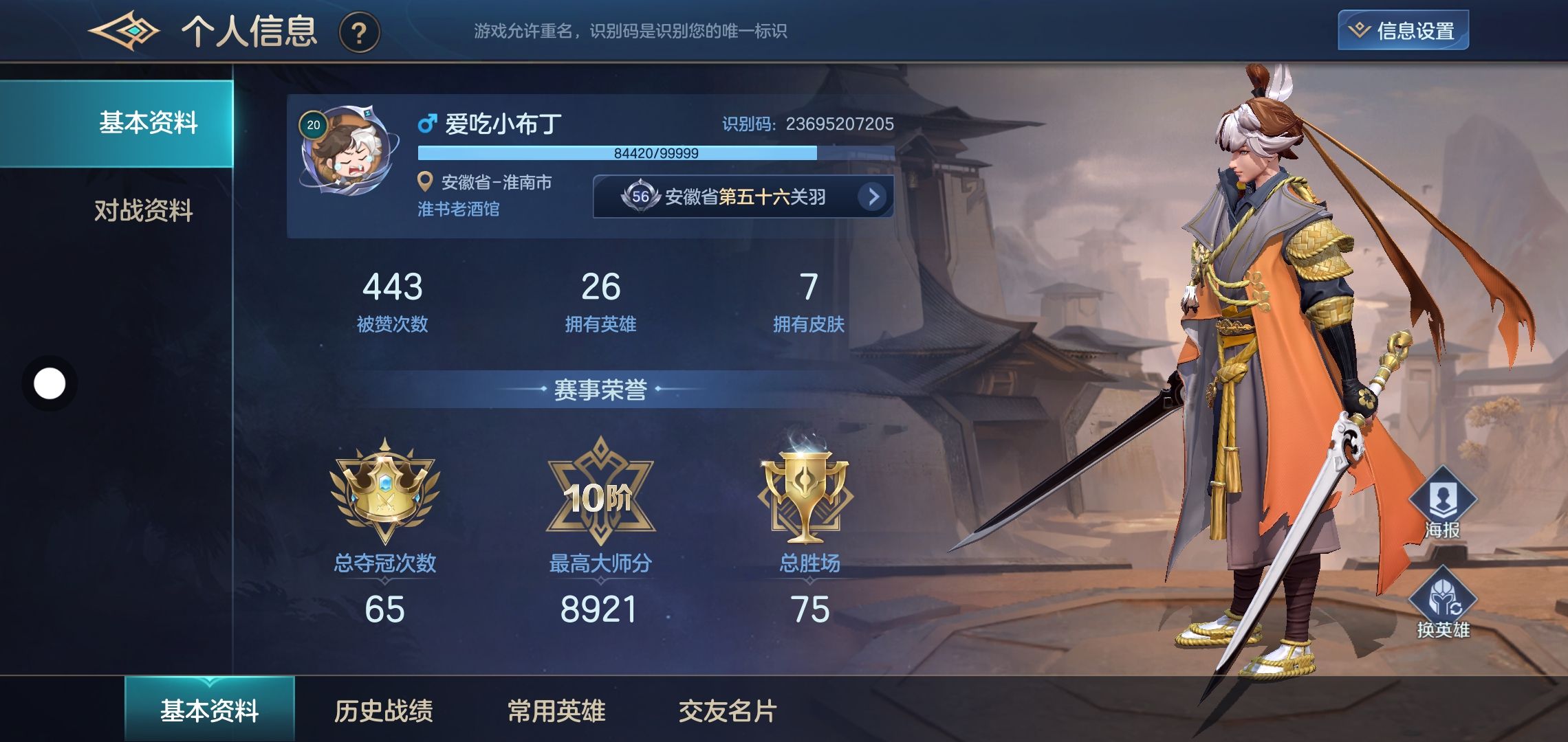 有人一起玩吗 ?我段位精英近卫三 ,关羽和黄忠有标 ,