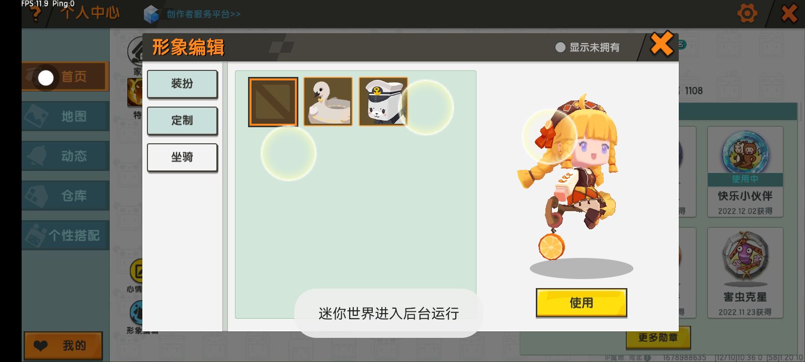 点击购买皮肤的界面,往下滑,找到福利,看40个广告获得迷你点,往右滑就会有一个抽奖的,我就用这招获得了两个皮肤