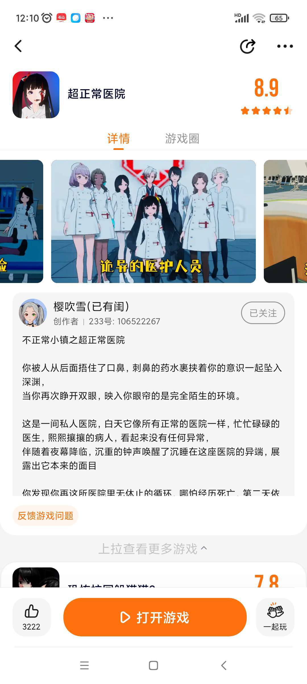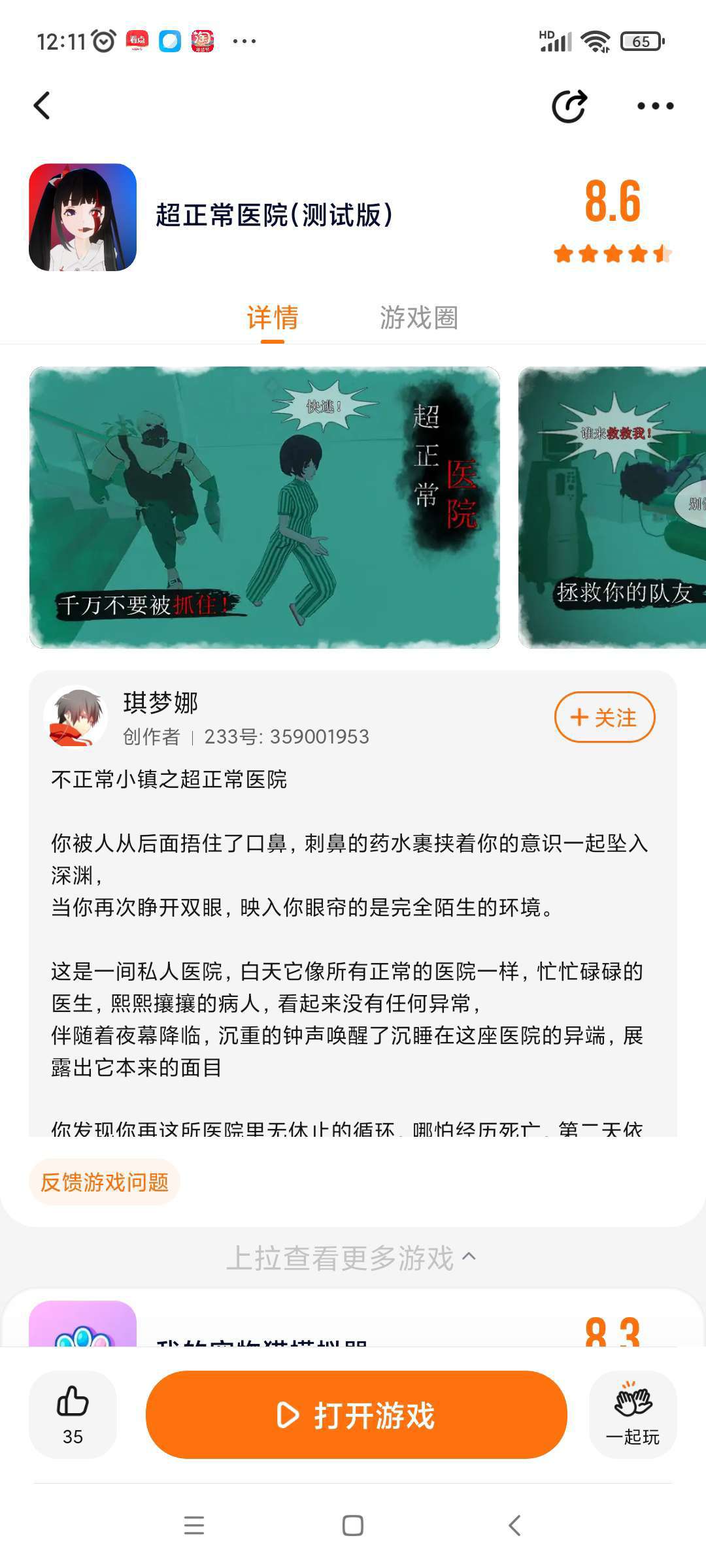 作者作者能不能把那个求生那个防止影子人的那个游戏加搞弱一点。吓死人。