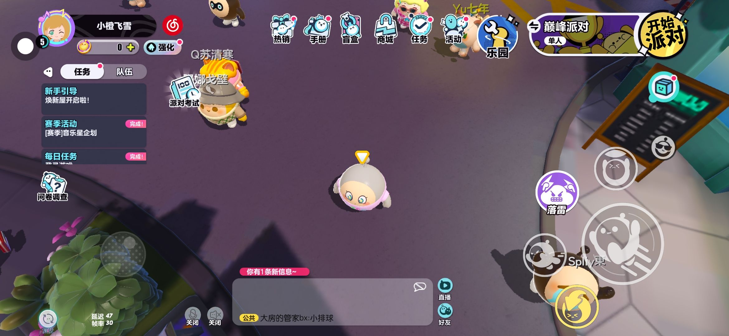 这里是蛋仔派对,家人们。你们想玩的话,可以关注我,可以吗?嘻嘻,我现在找了一个。蛋搭子。希望很多朋友们也会找我哟,谢谢。😀