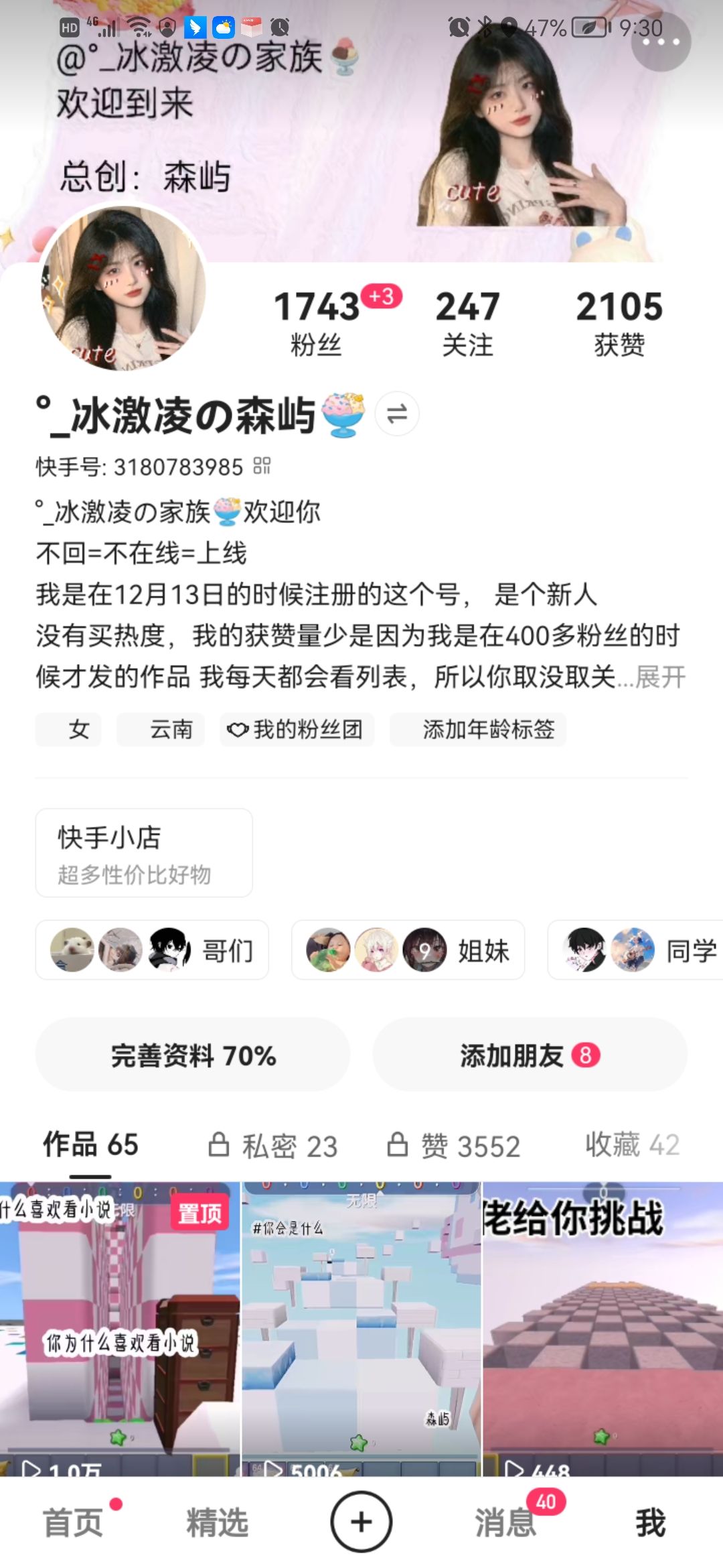 我在快手有1700多粉,竟然没有人跟我处闺😑