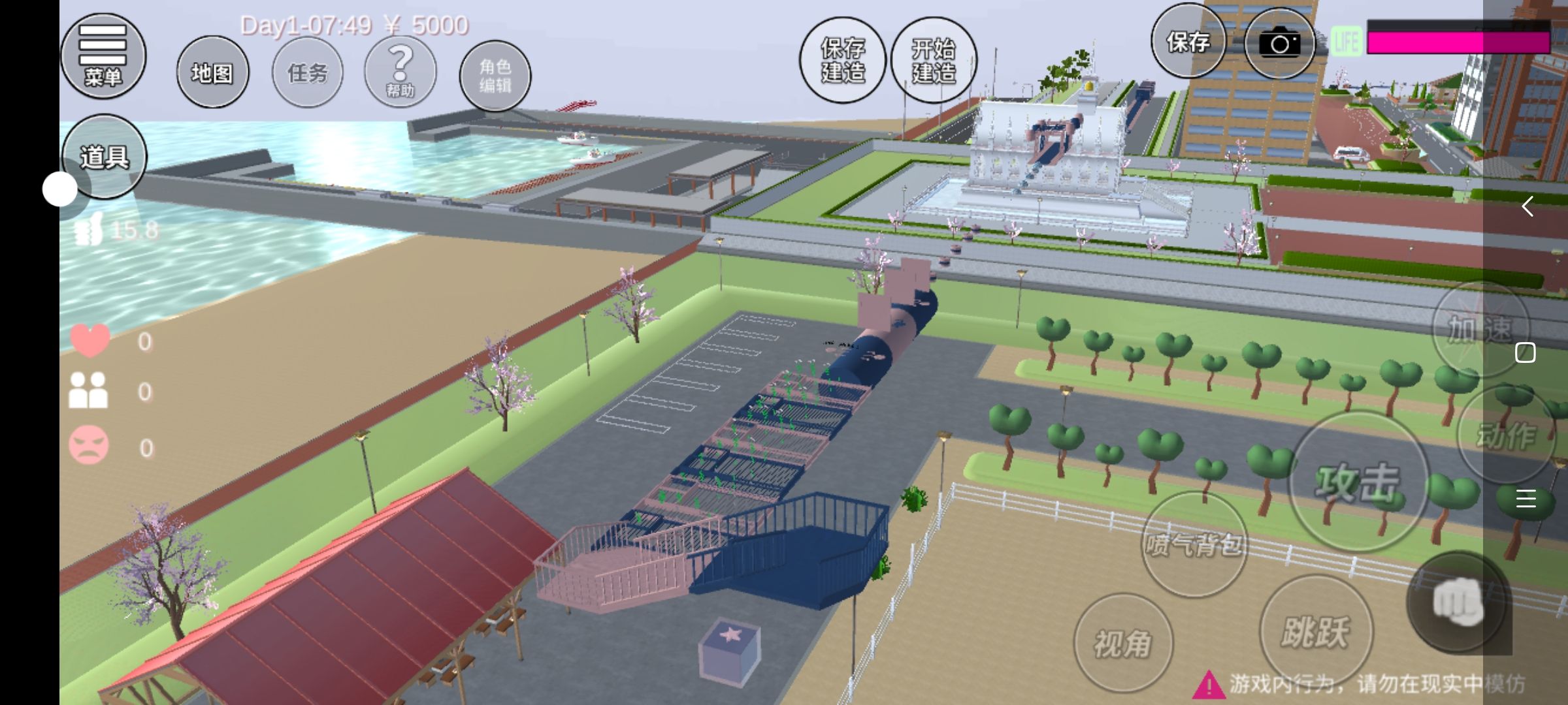 大家能去打卡一下我的建筑吗?😜顺便点下赞😁我花了一个星期才做好😭水上乐园