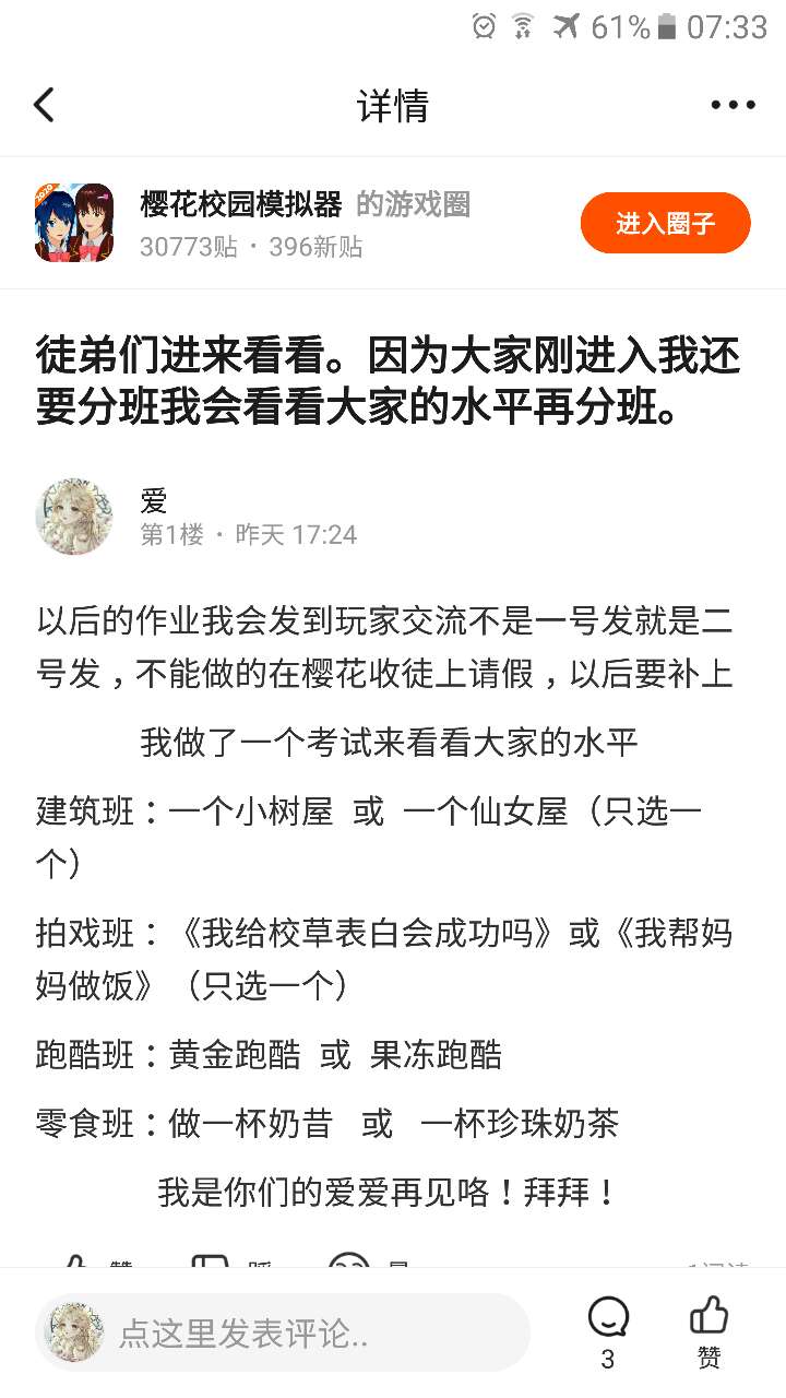另外还收零食班和跑酷班的班长