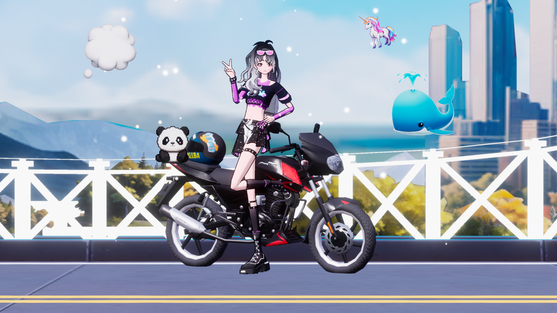 姐今天又换新服装了是不是很霸气跟这个摩托车非常配