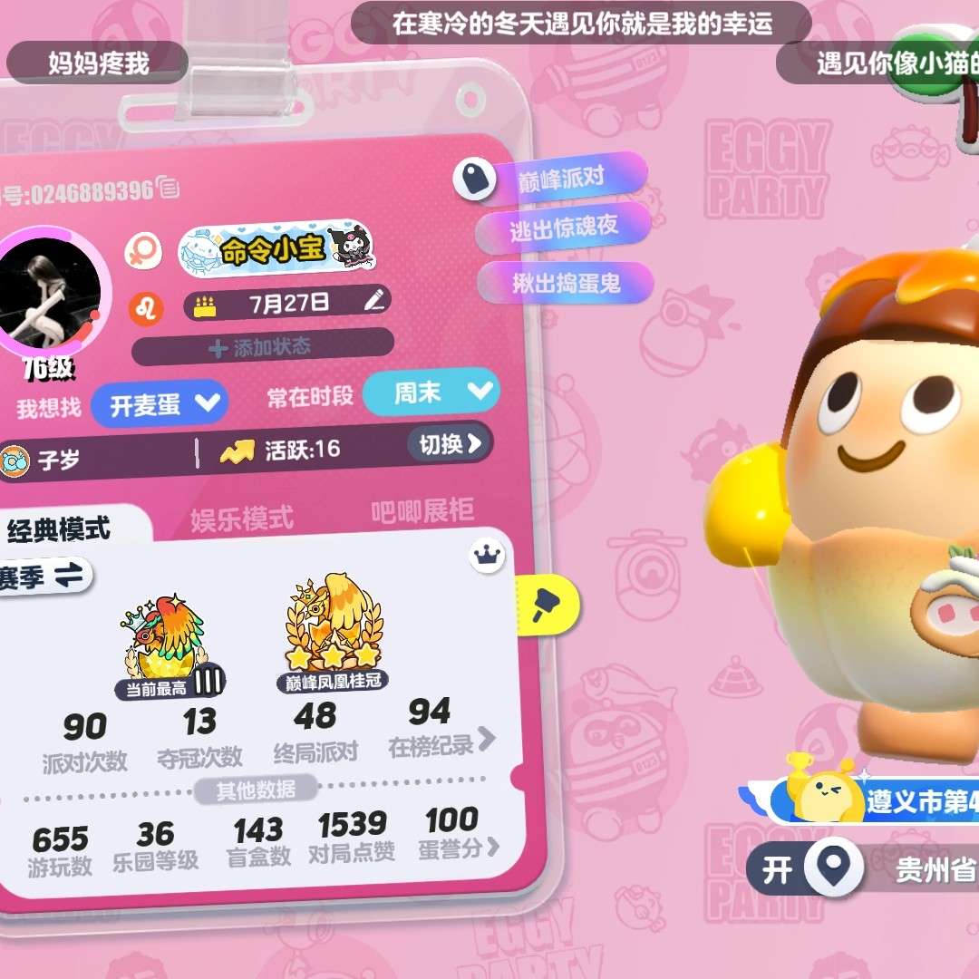 本人特别喜欢玩蛋仔派对,玩了蛋仔派对两年了,特别希望把这款游戏推荐给大家