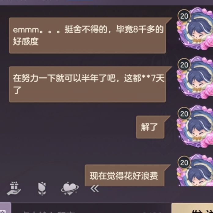 哈哈…我们谈了三四个月被莫名其妙的拉黑没 有任何解释8千多好感度解除的那刻有点不舍那又怎样没有可能了