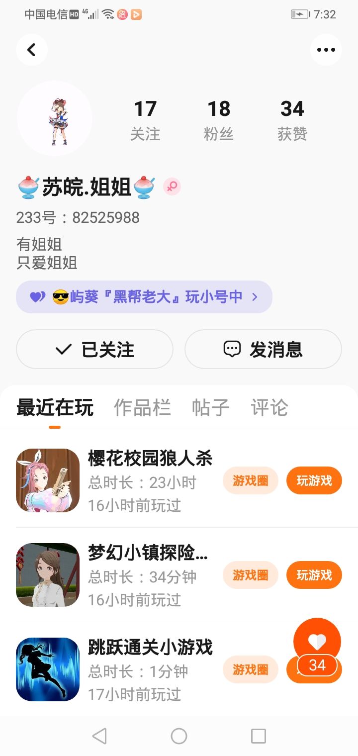 这什么意思?我妹妹在小号跟我配对过,然后我点他他那块就是我大号