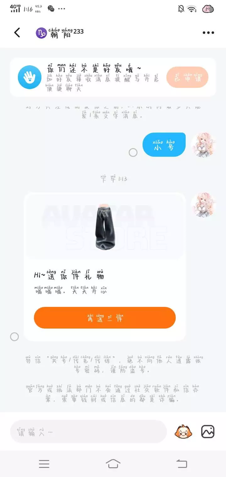 加我好友,我同意的可以送