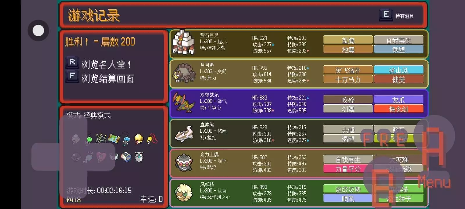 双斧战龙还是太超标了 ,175层 打那个boss,振翼发,y神,买嘎暴鲤龙 ,咬碎龙爪 直接平推 (防御增强剂捡了五六个 ,性格还是加防御的 ,吃一发月亮之力不死 ,物攻打我五六下都打不掉血