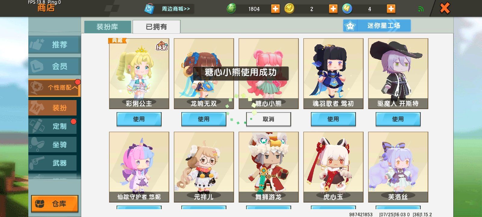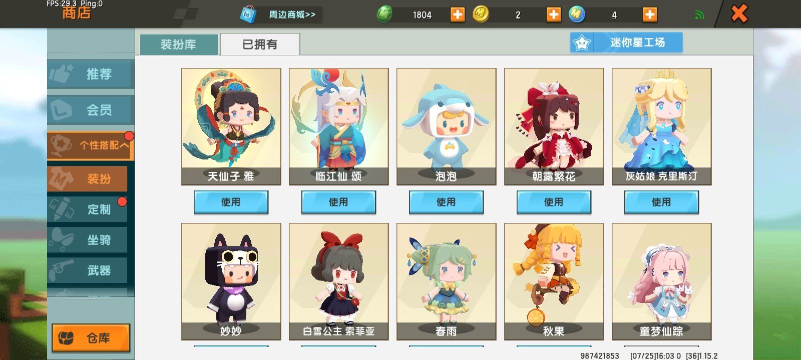 150r送了池月姐姐1000Z-去100还有50给小号买了小舞和定制还有定制又送了2人定制还剩9币