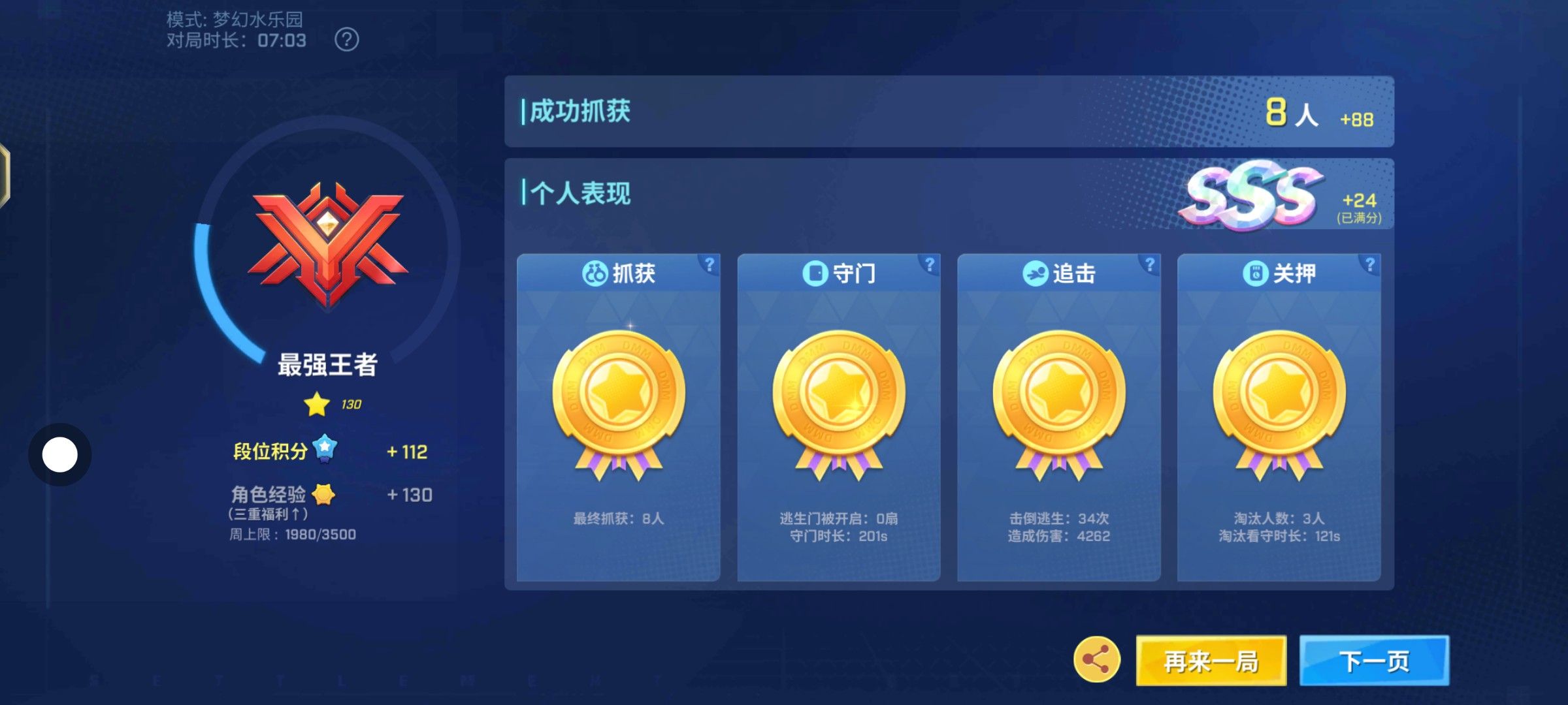 追捕那个段位那个星是旧的新的,已经到了130颗星了逃生者也一样140颗心左右
