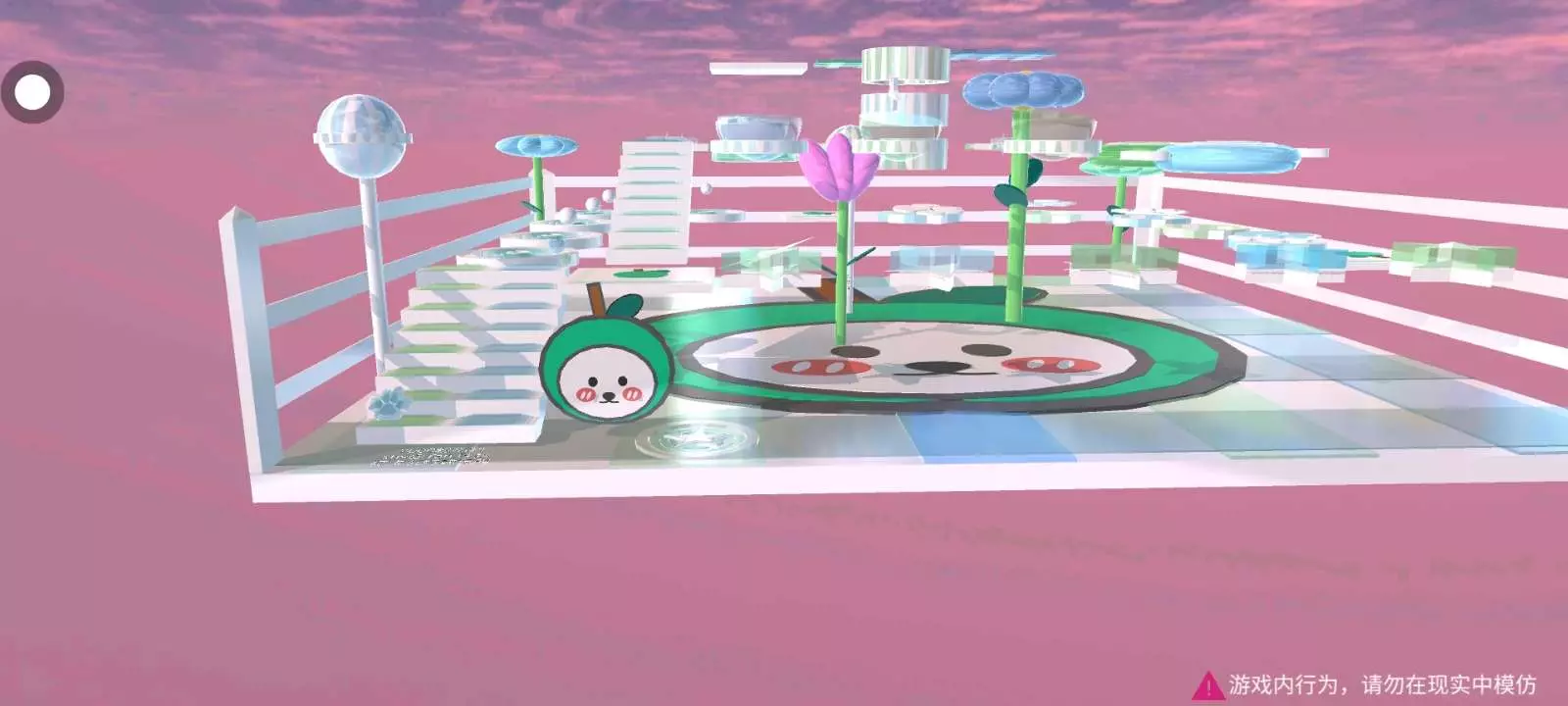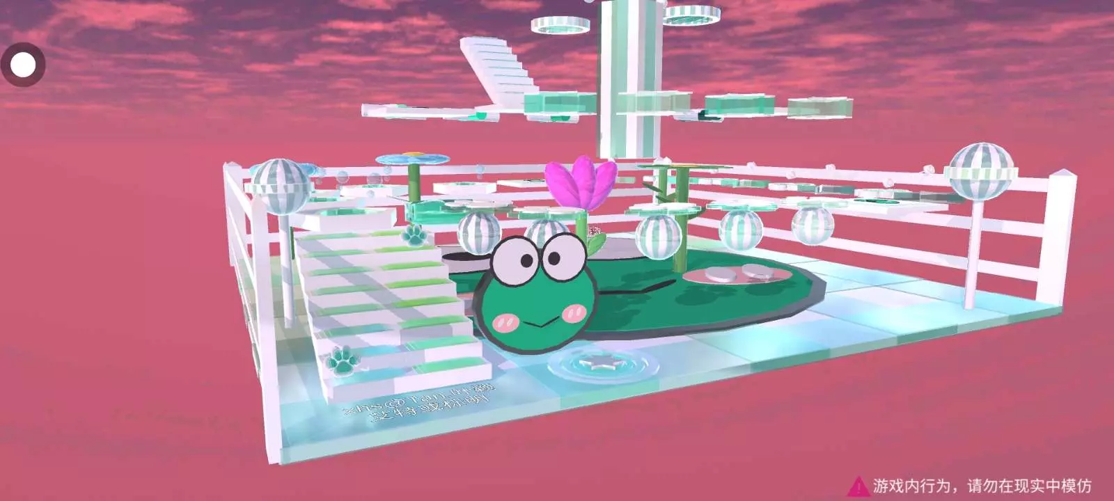 欢迎大家打call跑酷里面有几朵花和两根棒棒糖是用来装饰跑酷的跑酷颜色是绿色,非常清新的颜色。还设置了一个打卡点,围绕大眼青蛙的一个跑酷。打卡发视频艾特或标明