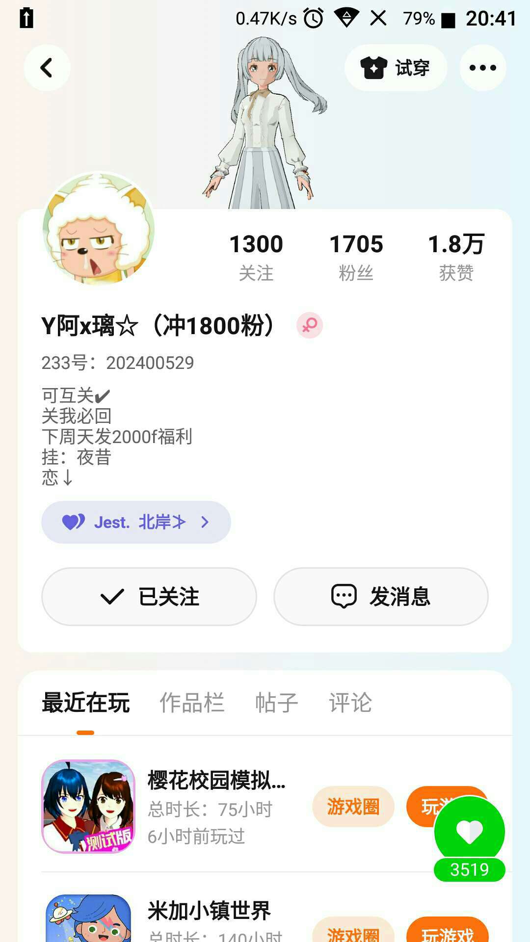 就说家人们这位杰杰超好相处的 还可以互关a