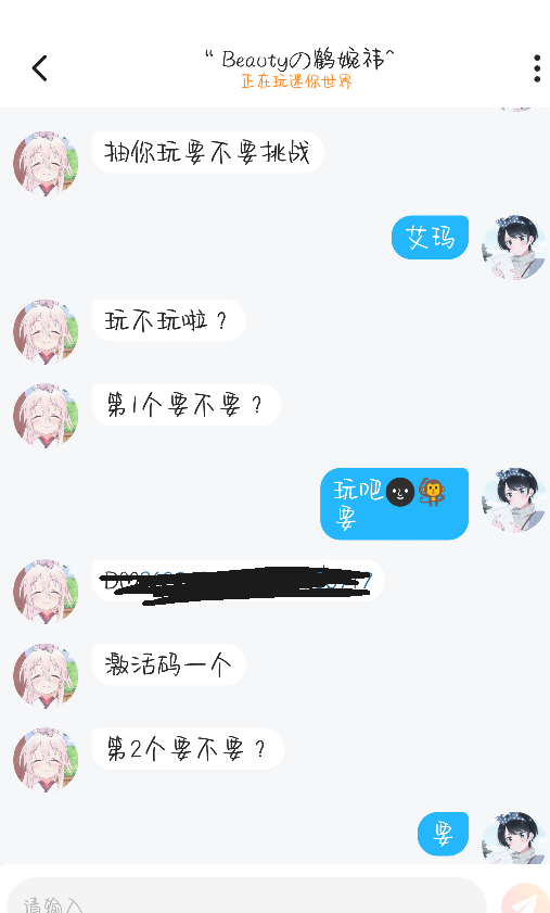 宣传,她人真的嘎嘎好🌚✌️,送了我两个jhm,我和她的聊天记录被官方吞了无数次……💔