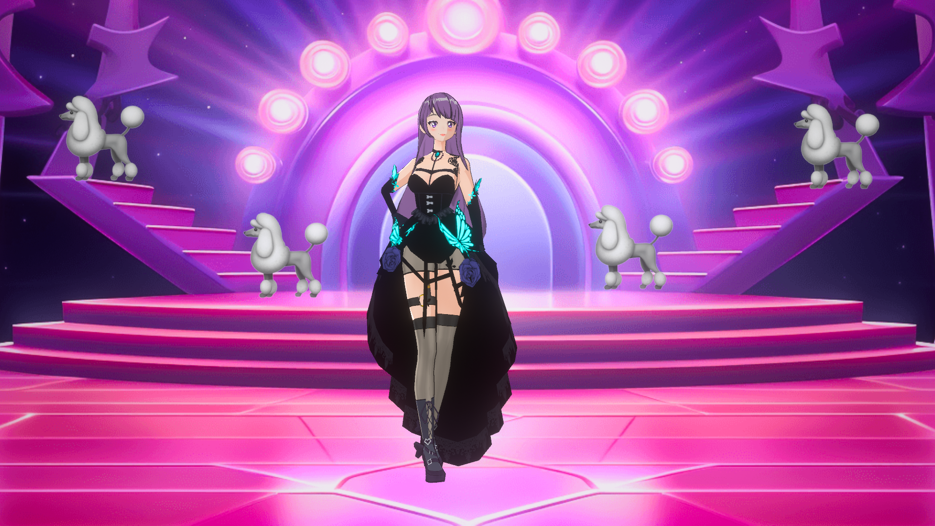 这是我在舞台走秀的时候,我的闺蜜给我拍的,我后面这些狗是参加狗狗走秀的