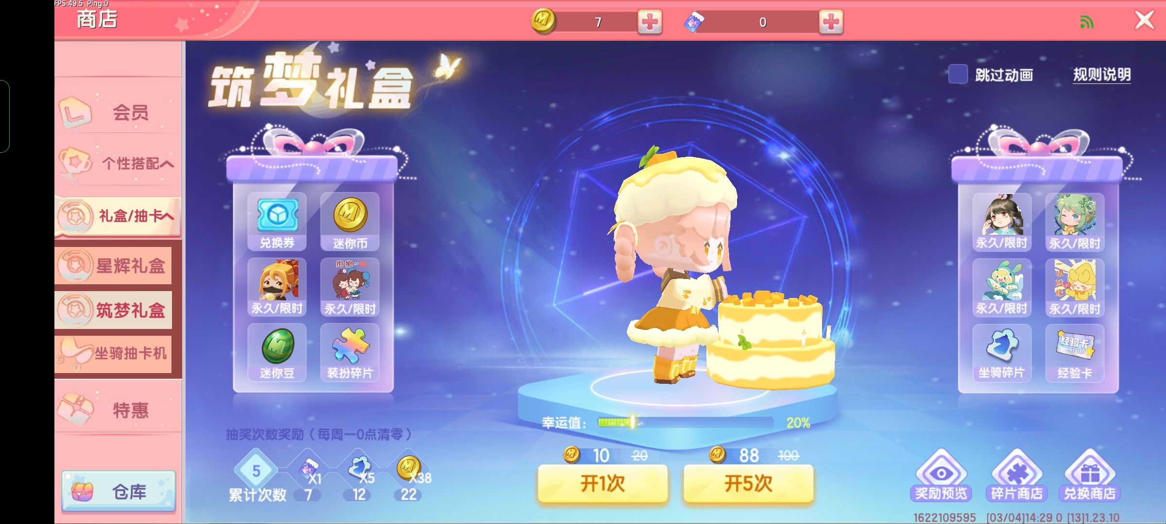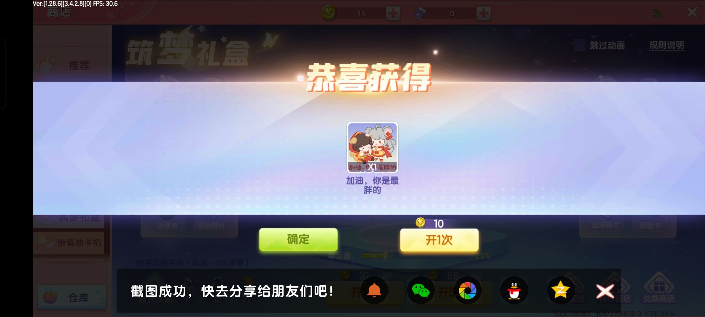 哇哇哇20幸运值中了一个永久的!