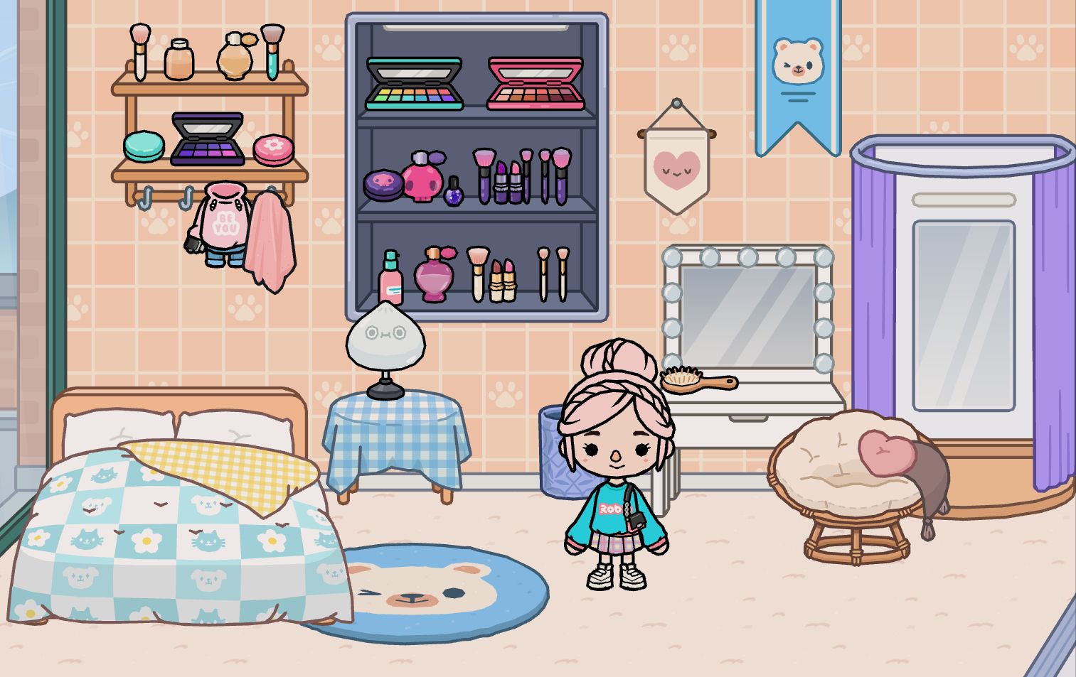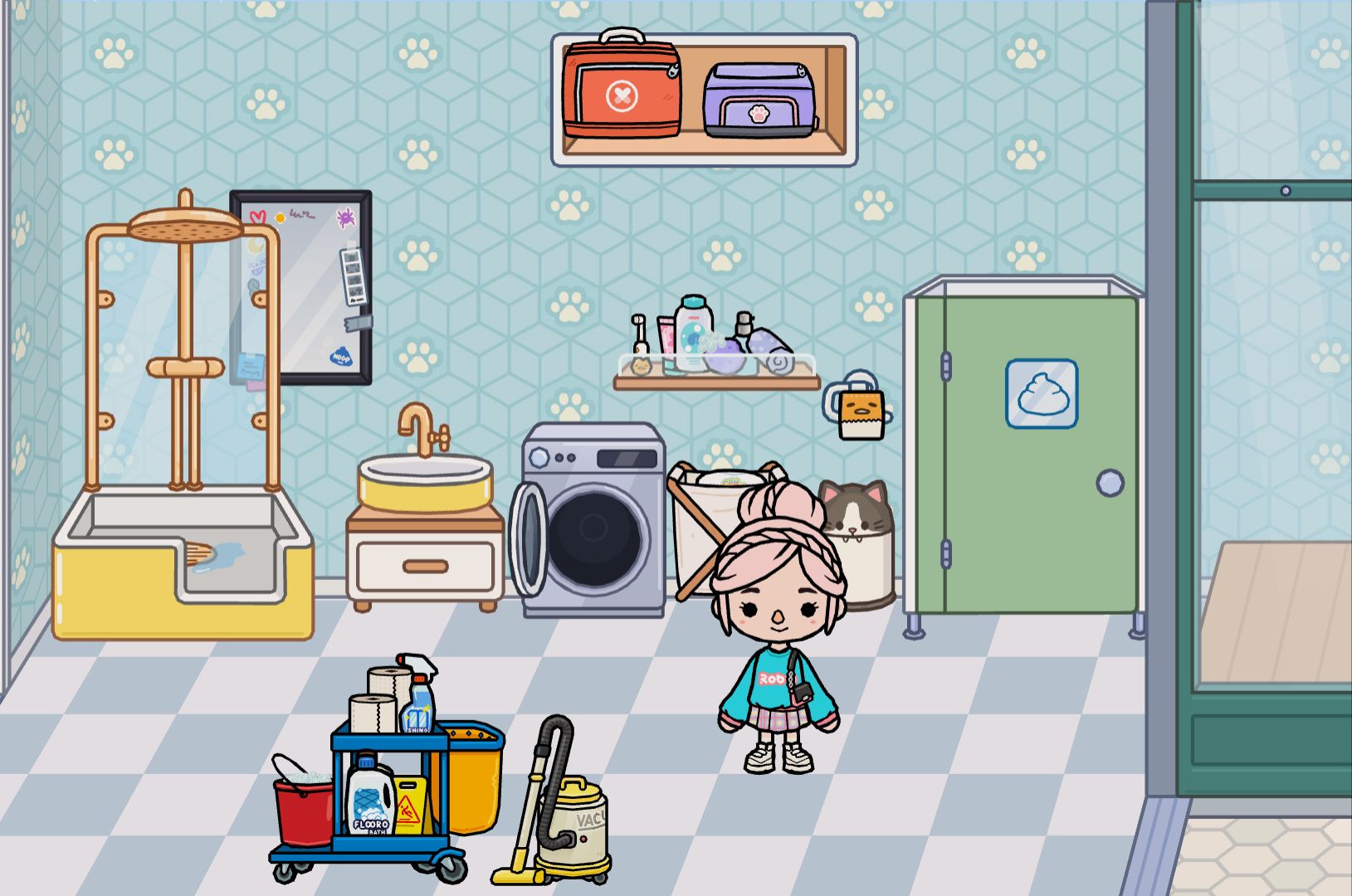 我来找托卡世界的室友了,私聊发人物给我,下面有卧室厕所,露天客厅,厨房,外加一个养猫的地方