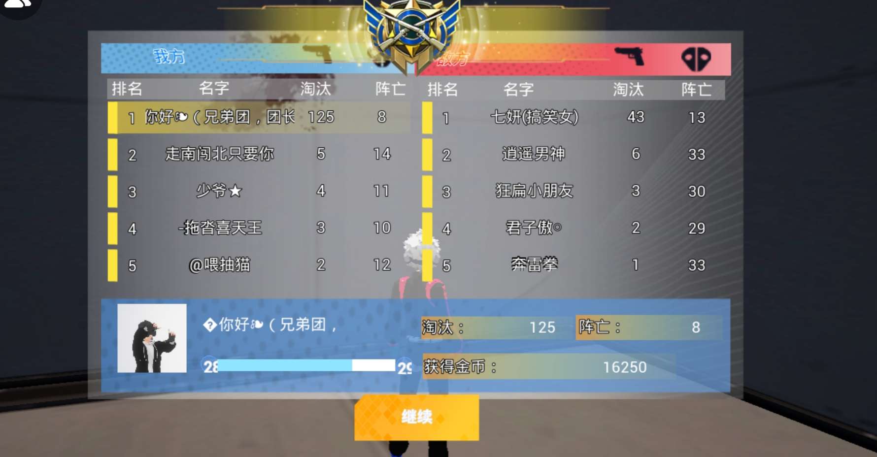 看看兄弟的,在看看我的,他杀134人死2次,我杀125人死8次,兄弟你……啥也不说就问你咋做的???