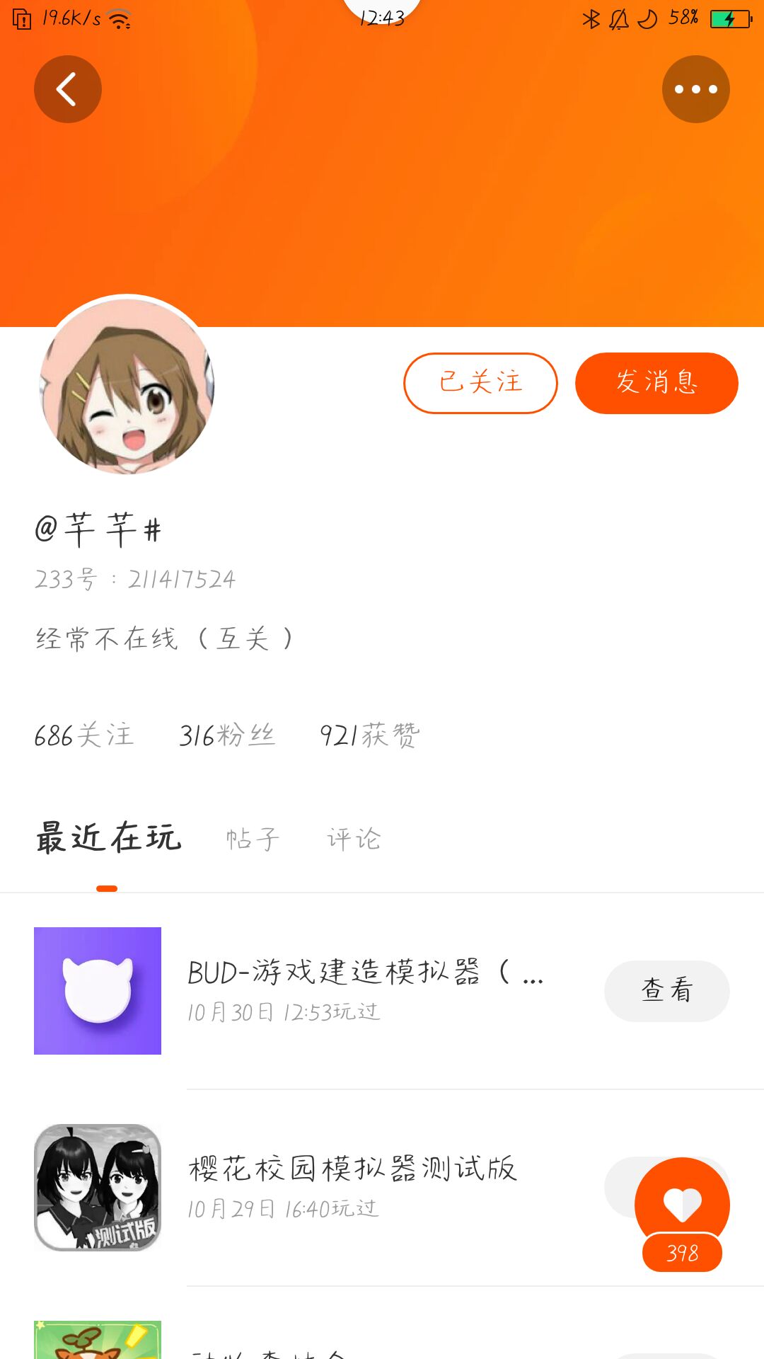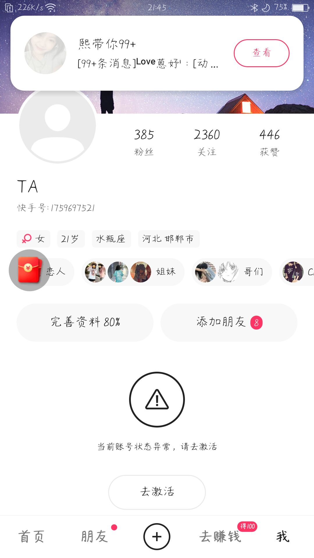 快手把我的第两个号封了😟
