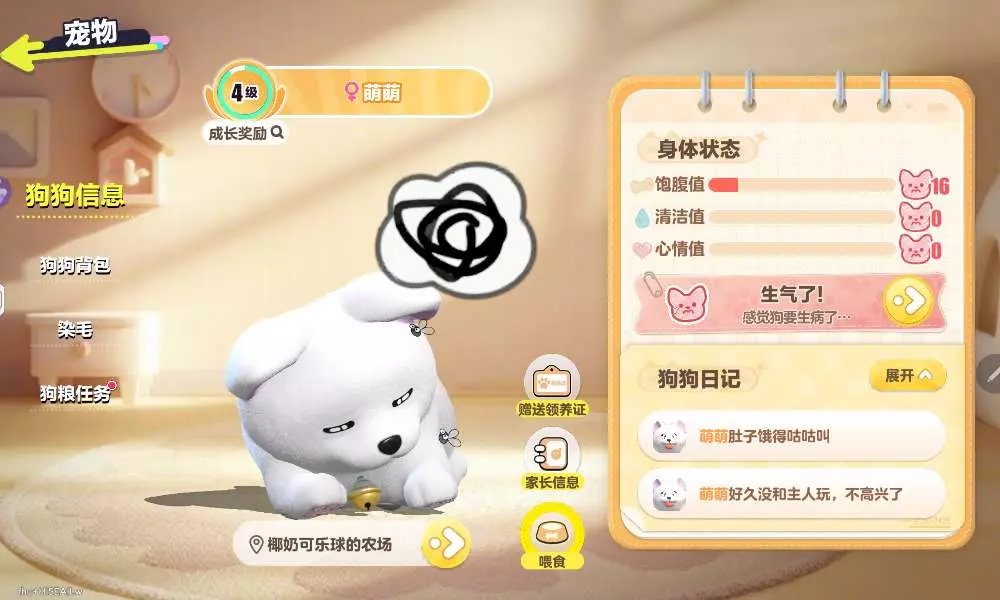 我有亿天亡忌喂小狗了,小狗差点就去汪星了(好可怜),就是不知道会不会骂我(现在已经喂了,就是但再到领养小狗那块区域,为什么总是有粑粑粘在我身上,搞不下来)复位没用,过一段时间才好