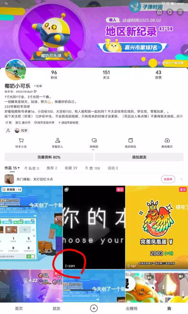 终于破5000播放量了,虽然赞少,但至少比之前要好@快手椰奶小可乐 @233椰奶芋泥球@蛋仔派对椰奶可乐球@我的世界椰奶小可乐