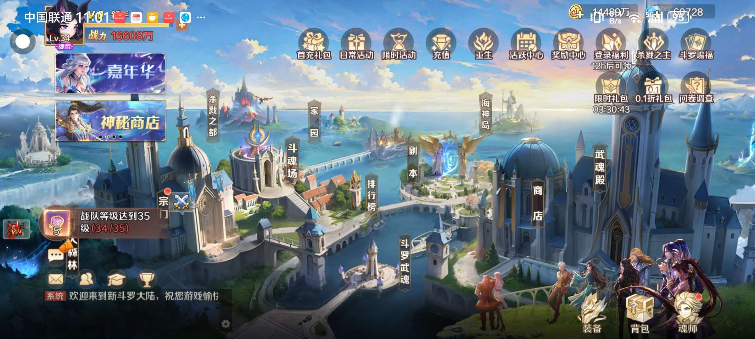新手第三天,战力2亿5千万,钻石7万