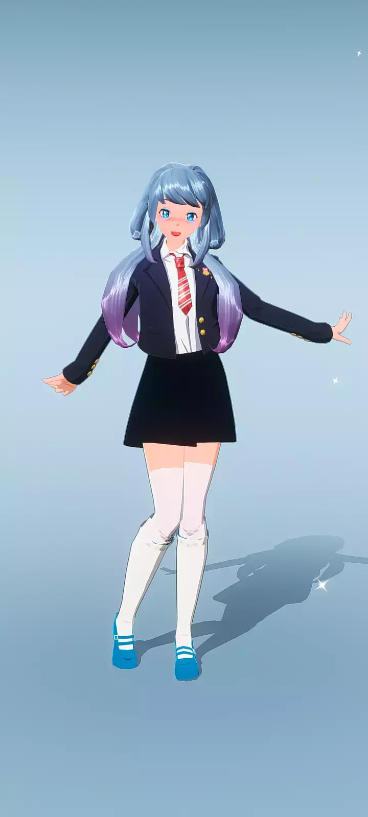 名字:星野绘梨学校:樱咲女子高中星座:天秤座 生日:10月10日年龄:16岁身份:高二(3)班文艺委员最喜欢的爱好:创作校园主题的短篇小说、哼唱自创旋律班级:高二(3)班介绍:星野绘梨是樱咲女子学园里的文艺少女,浅蓝渐变紫的头发如同她脑海中那些浪漫的灵感,总是闪烁着独特光芒。校服在她身上被穿出别样青春感,日常温柔又有点迷糊,可一旦拿起笔创作,或是哼起自己写的旋律,眼神里就会透出专注坚定,用细腻心思捕捉校园里的美好瞬间,把平凡日常变成笔下、歌里的动人故事,是班级里传递温暖与诗意的存在 。最喜欢说的话:“要是能把今天的阳光和大家的笑容,都写成歌就好啦”最喜欢做的事情:组织“校园角落探险”活动,挖掘那些被忽略的美好场景,当作创作素材 举办一场校园短篇小说朗读会,把自己和同学们的故事分享给更多人