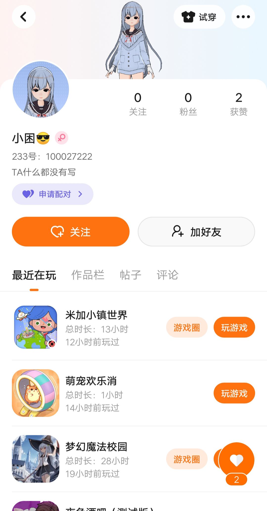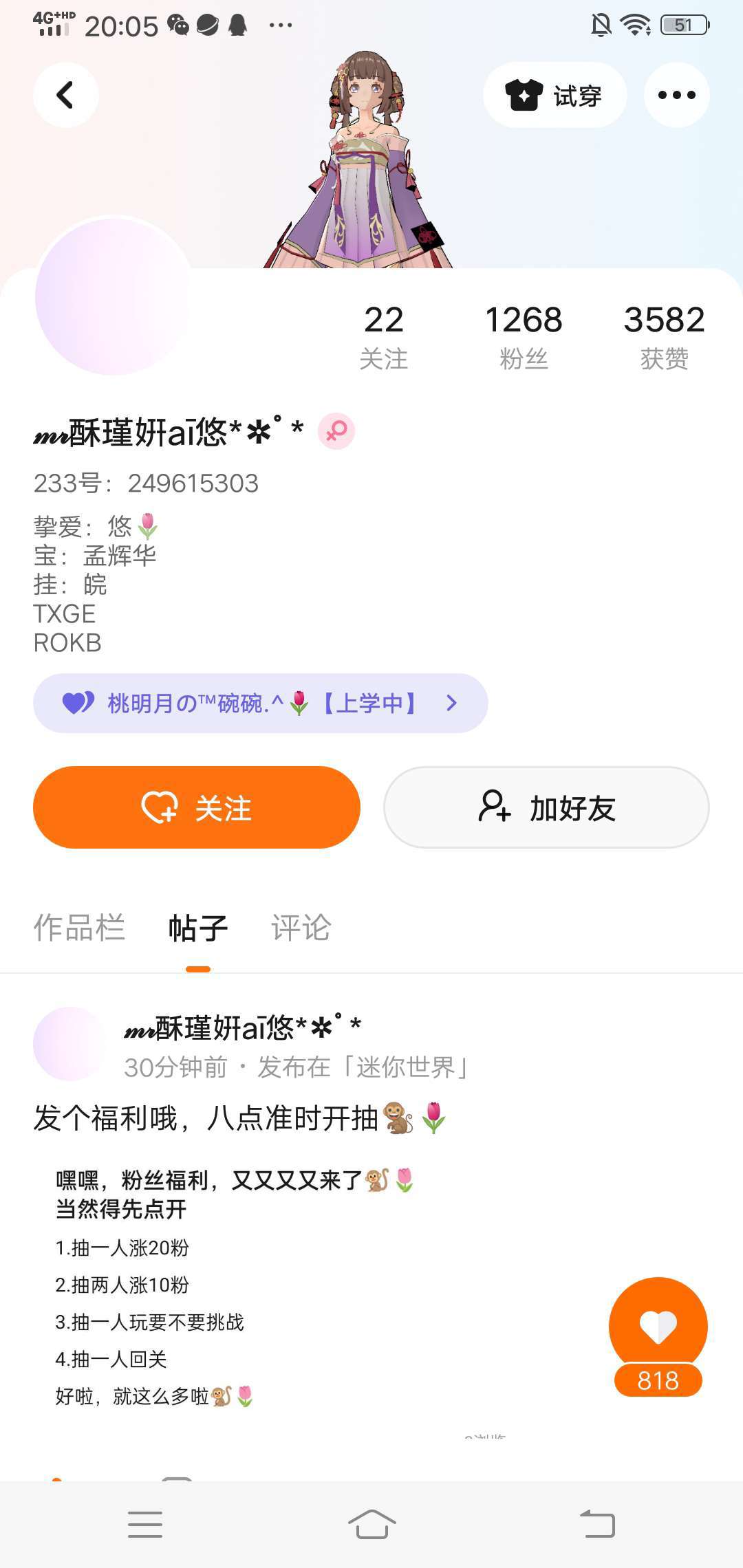 小号互关,最多50,不回=不在线或者是在玩游戏