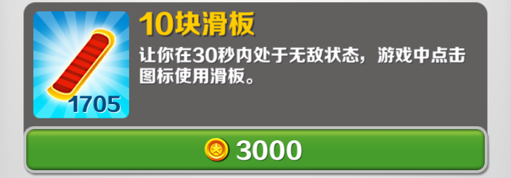 3⃣滑板必须要多,滑板相当于多了一条命,跑分时滑板不能停,这样可以减少复活的次数!