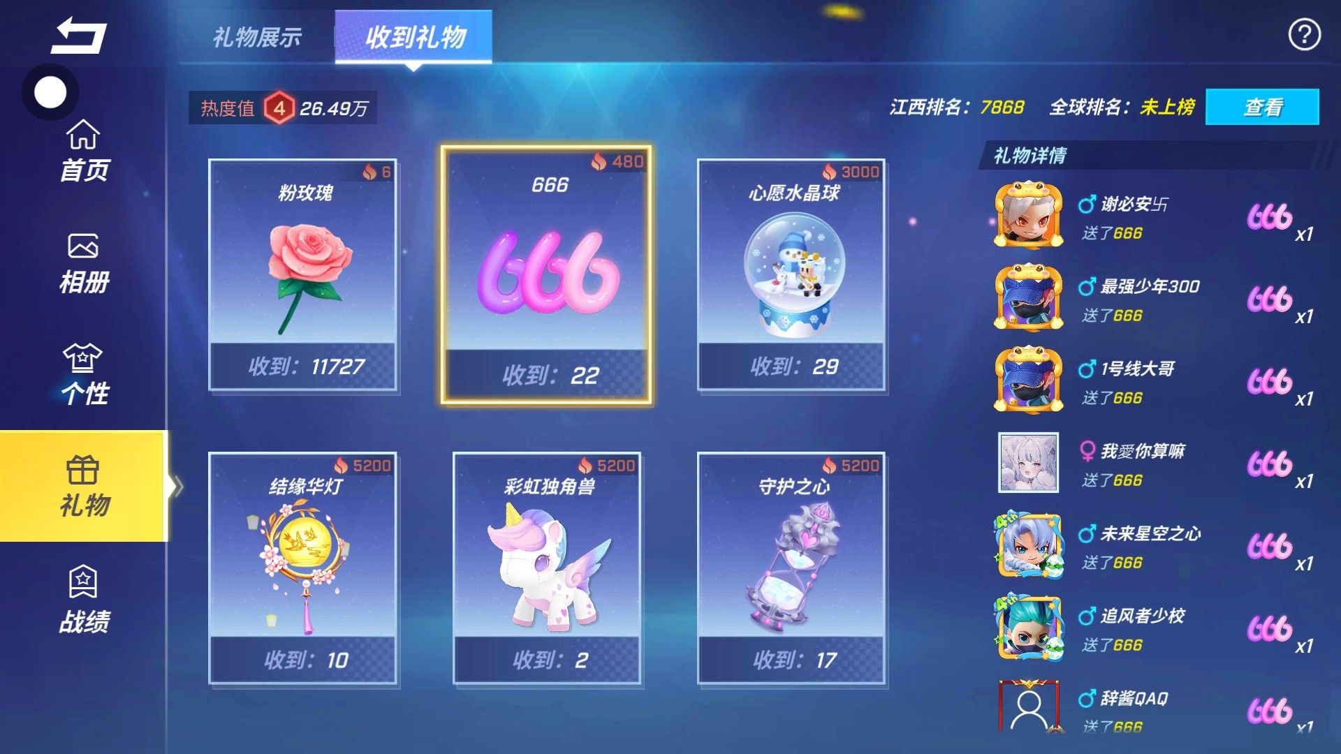 被小词酱1849285骗了1个666,1个5200的,50朵花