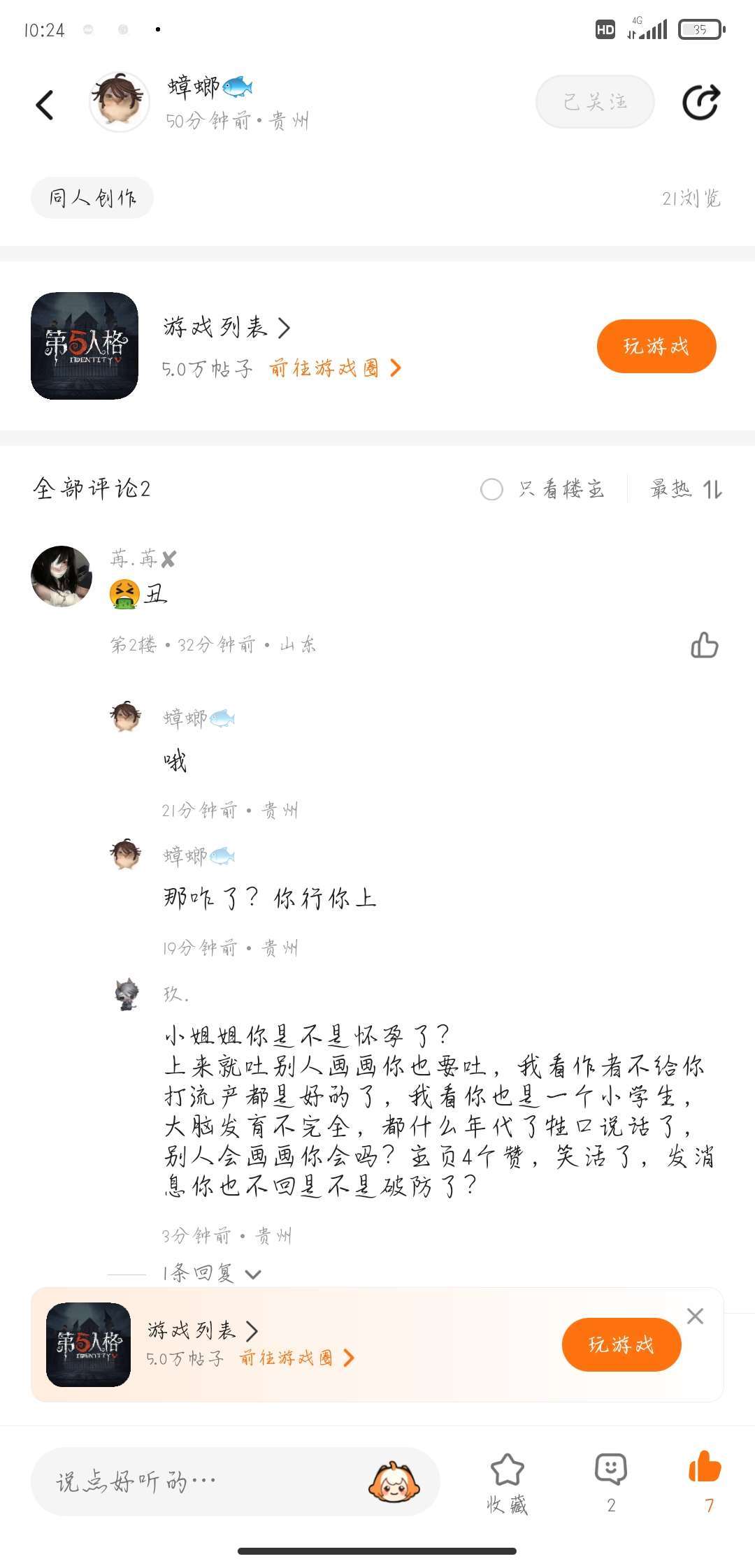 我知道你是个直肠子也不能用嘴拉吧这未免是不是有点太恶心了呢?主播是一个好人,不是经常骂,是他自己上来说我们画的丑,所以说朱波才去骂他的.😂