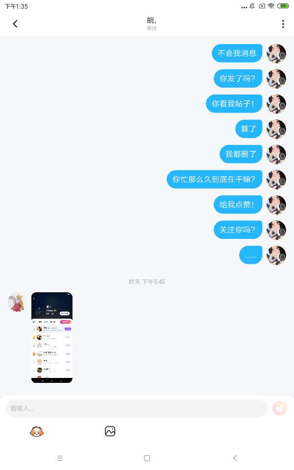 当我给朋友分享...她却不上线...