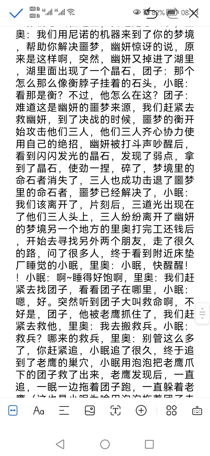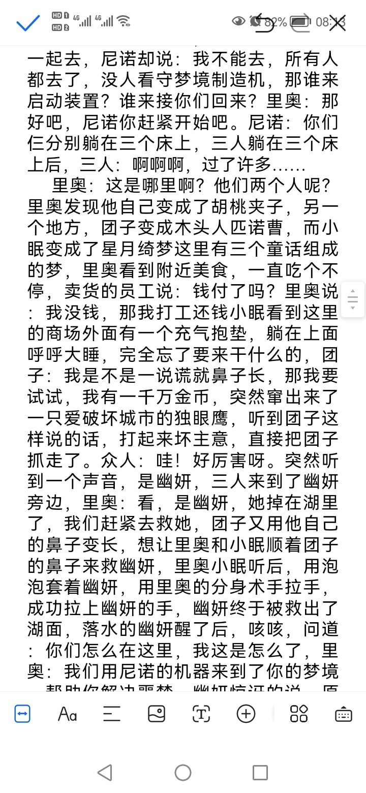 手游233平台id204552988,我觉得接下来的故事是 幽妍听到里奥和小眠还有团子的敲门声呐喊声,幽妍打开了门,幽妍问道:你们怎么来了?里奥急匆匆的说:我们听到你一直大喊,以为你出什么事了?!所以我们来看看你,小眠:我睡得好好得,突然听到你的叫声,也跟着来看看。幽妍说道,我只是做了个噩梦,抱歉打扰到了你们,对不起。团子说,没关系只是做了个噩梦而已,肯定是压力太大了,你先好好休息吧,我们就先走了。过了许多片刻后……小眠和团子还有里奥决定去找尼诺,找到尼诺后,他们仨跟尼诺说明了来龙去脉,尼诺去实验室里拿出来一个梦境制造机,尼诺:当当,看我的全新发明这是一台能够通向别人的梦境制造机,可以让别人做美梦,也可以让别人做噩梦。里奥打趣地说道:可以让我的梦通向幽妍的梦吗?尼诺:当然可以,团子:里奥,你是不是想做干什么坏事啊,里奥连连表示没有,小眠打断他俩,说道:我觉得里奥是想用梦境制造机帮助幽妍做美梦吧,里奥说:对对对,我就是这个意思!!团子也明白了。片刻之后,小眠拿出自己的童话故事书,他们仨决定去幽妍的梦里,本来想让尼诺也一起去,尼诺却说:我不能去,所有人都去了,没人看守梦境制造机,那谁来启动装置?谁来接你们回来?里奥:那好吧,尼诺你赶紧开始吧。尼诺:你们仨分别躺在三个床上,三人躺在三个床上后,三人:啊啊啊,过了许多…… 里奥:这是哪里啊?他们两个人呢?里奥发现他自己变成了胡桃夹子,另一个地方,团子变成木头人匹诺曹,而小眠变成了星月绮梦这里有三个童话组成的梦,里奥看到附近美食,一直吃个不停,卖货的员工说:钱付了吗?里奥说:我没钱,那我打工还钱小眠看到这里的商场外面有一个充气抱垫,躺在上面呼呼大睡,完全忘了要来干什么的,团子:我是不是一说谎就鼻子长,那我要试试,我有一千万金币,突然窜出来了一只爱破坏城市的独眼鹰,听到团子这样说的话,打起来坏主意,直接把团子抓走了另一个地方的里奥打完工还钱后,开始去寻找另外两个朋友,走了很久的路,问了很多人,终于看到附近床垫厂睡觉的小眠,里奥:小眠,快醒醒!!小眠:啊~睡得好饱啊,里奥:我们赶紧去找团子,看看团子在哪里,小眠:嗯,好。突然听到团子大叫救命啊,不好是,团子,他被老鹰抓住了,我们赶紧去救他,里奥:我去搬救兵。小眠:救兵?哪来的救兵,里奥:别管这么多了,你赶紧追,小眠追了很久,终于追到了老鹰的巢穴,小眠用泡泡把老鹰爪下的团子救了出来,老鹰发现后,一直追,一眠一边拖着团子跑,一直躲着老鹰(这也是小眠为啥用泡泡拖着团子走的原因)小眠累得气喘吁吁,实在跑不动了,里奥把他请来的援兵搬过来了,是童话镇的士兵和团长,大家纷纷用弓箭,长矛,大炮攻击独眼鹰,独眼鹰散动翅膀,把士兵的大炮刮飞了,击垮了弓箭手,老鹰决定使出绝招,俯身冲击。老鹰打得飞得更高,团子想到了办法,大喊,我家里有矿,我有女朋友,我有……,团子一边喊,团子的鼻子一边变得老长老长的,鼻子都搓破了小眠的泡泡,团子用尽全力一扭头,仅仅只是用鼻子就把老鹰打飞了。。众人:哇!好厉害呀。突然听到一个声音,是幽妍,三人来到了幽妍旁边,里奥:看,是幽妍,她掉在湖里了,我们赶紧去救她,团子又用他自己的鼻子变长,想让里奥和小眠顺着团子的鼻子来救幽妍,里奥小眠听后,用泡泡套着幽妍,用里奥的分身术手拉手,成功拉上幽妍的手,幽妍终于被救出了湖面,落水的幽妍醒了后,咳咳,问道:你们怎么在这里,我这是怎么了,里奥:我们用尼诺的机器来到了你的梦境,帮助你解决噩梦,幽妍惊讶的说,原来是这样啊,突然,幽妍又掉进了湖里,湖里面出现了一个晶石,团子:那个怎么那么像衡脖子挂着的石头,小眠:看那是衡?不过,他怎么在这?团子:难道这是幽妍的噩梦来源,我们赶紧去救幽妍,到了决战的时候,噩梦的衡开始攻击他们三人,他们三人齐心协力使用自己的绝招,幽妍被打斗声吵醒后,看到闪闪发光的晶石,发现了弱点,拿到了晶石,使劲一捏,碎了,梦境里的命石者消失了,三人也成功击退了噩梦里的命石者,噩梦已经解决了,小眠:我们该离开了,片刻后,三道光出现在了他们三人头上,三人纷纷离开了幽妍的梦境这时,小眠突然说道:看,是幽妍,里奥:我们去你的梦境了,帮你解决了噩梦的来源,幽妍:嗯,谢谢你们。
