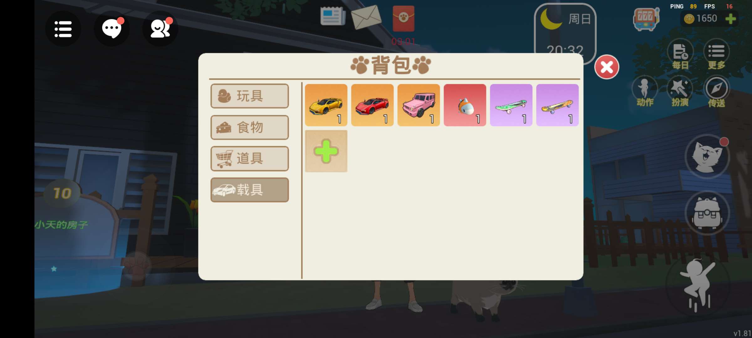 喵喵大王请尽快修复,我都不敢进游戏了,一进游戏不是家具少就是车少就是道具少