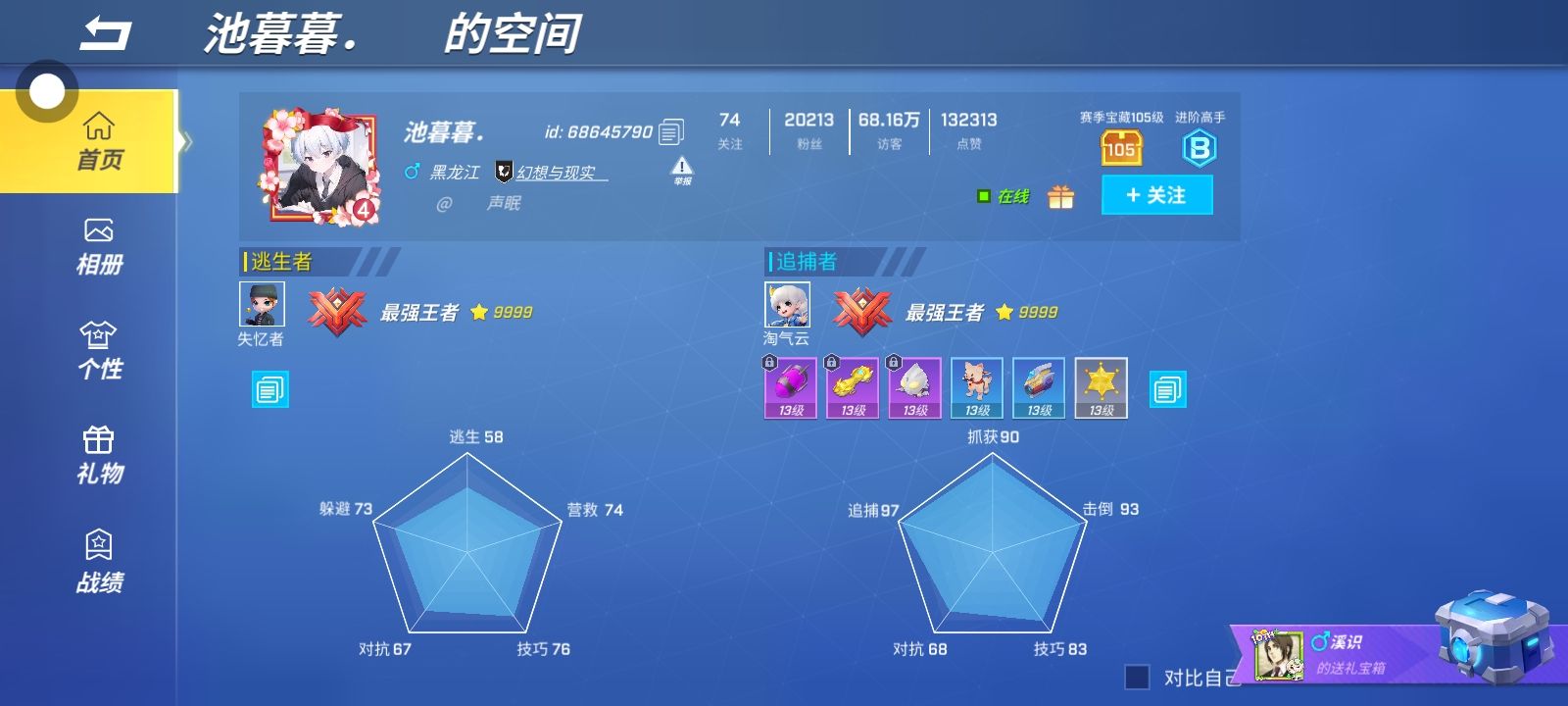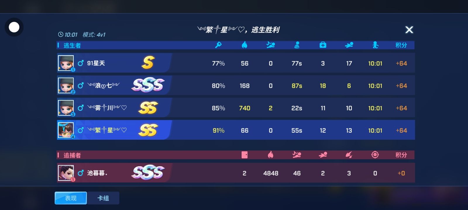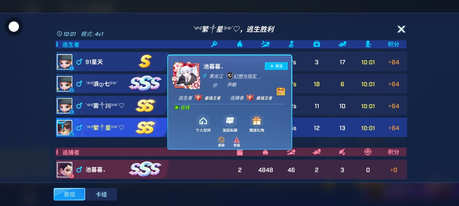 我今天是怎么回事儿?都匹配到他两把了。一个是我是逃生,一个是追捕,我操。都能匹配到他。而且还是挽风家族。我真的心态崩了呀