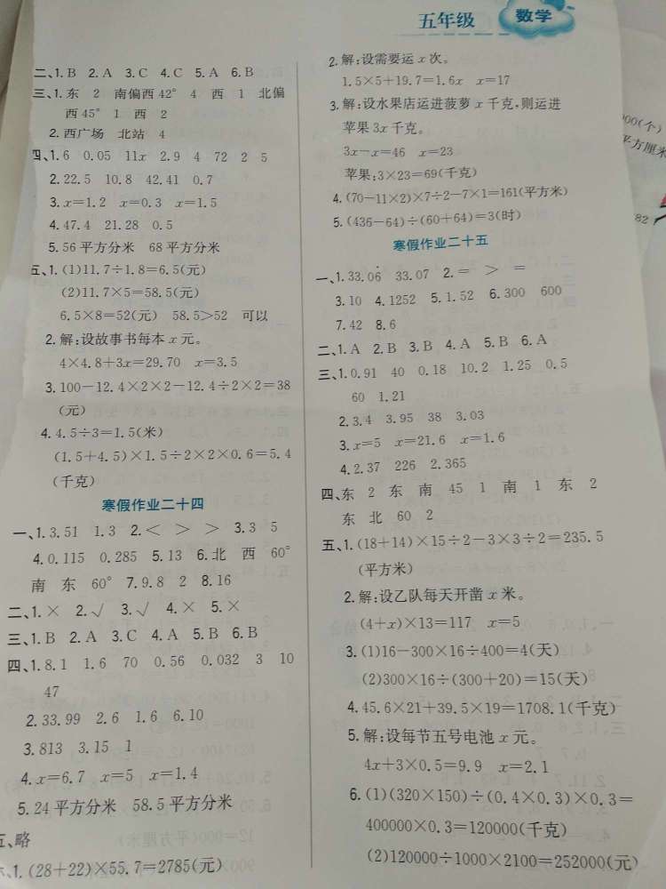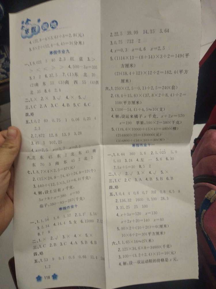 这些就是五年级上册的数学答案了。 有不对的,再说。👉💗 ′希望大家点个赞! 谢谢,寒假的答案。