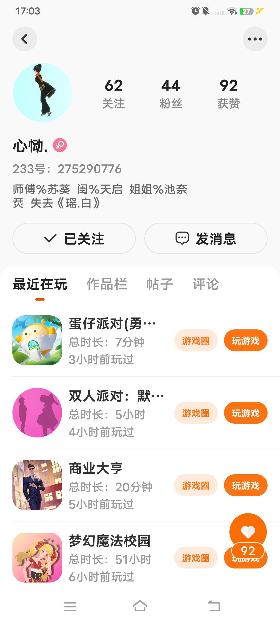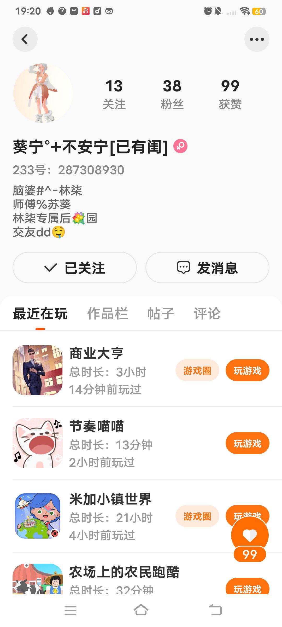 我都玩233 3年了,没一个对象😓