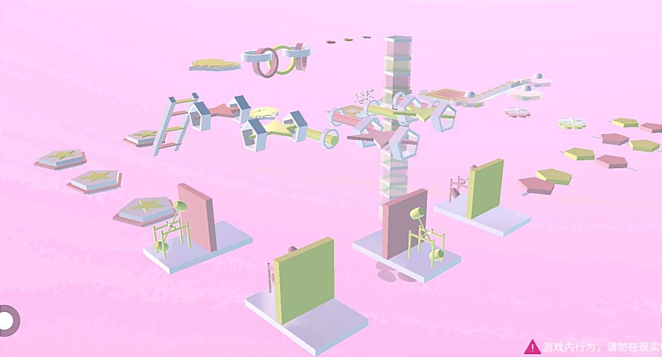 再接着是跳圆管 两个大的是开了物理👀🌱 然后跳下五角管来到下面 映入眼帘的是一块木板上面有小摆锤☁️两个在左 两个在右🌷 随后是再次到上面(这里不知道为什么穿模了🥺) 躲避圆管里的锤子🔨跳下去就打卡成功了👍🏻✅ 结尾是公园
