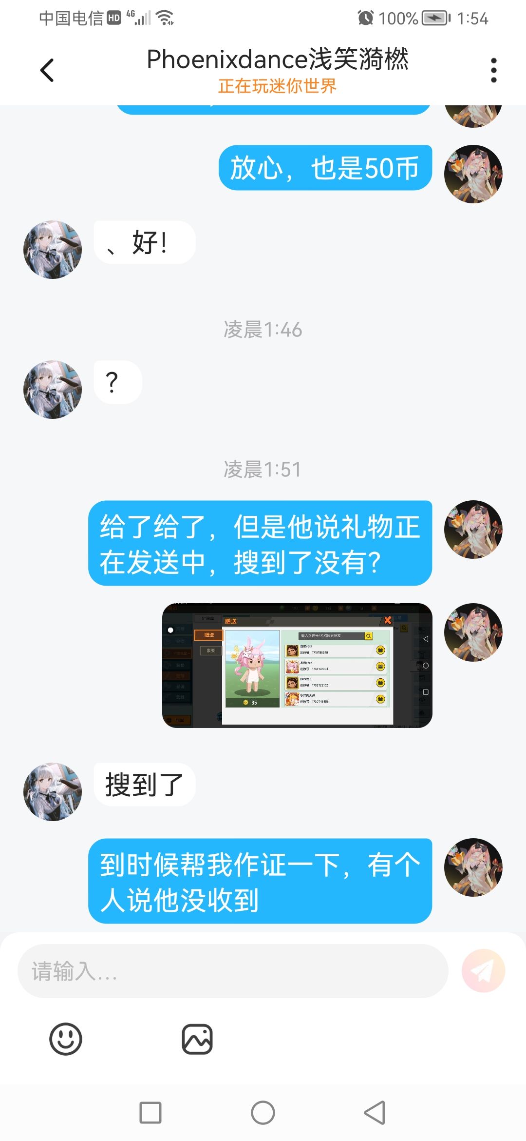 没有,没有礼物,正在发送中,是因为我截不到图