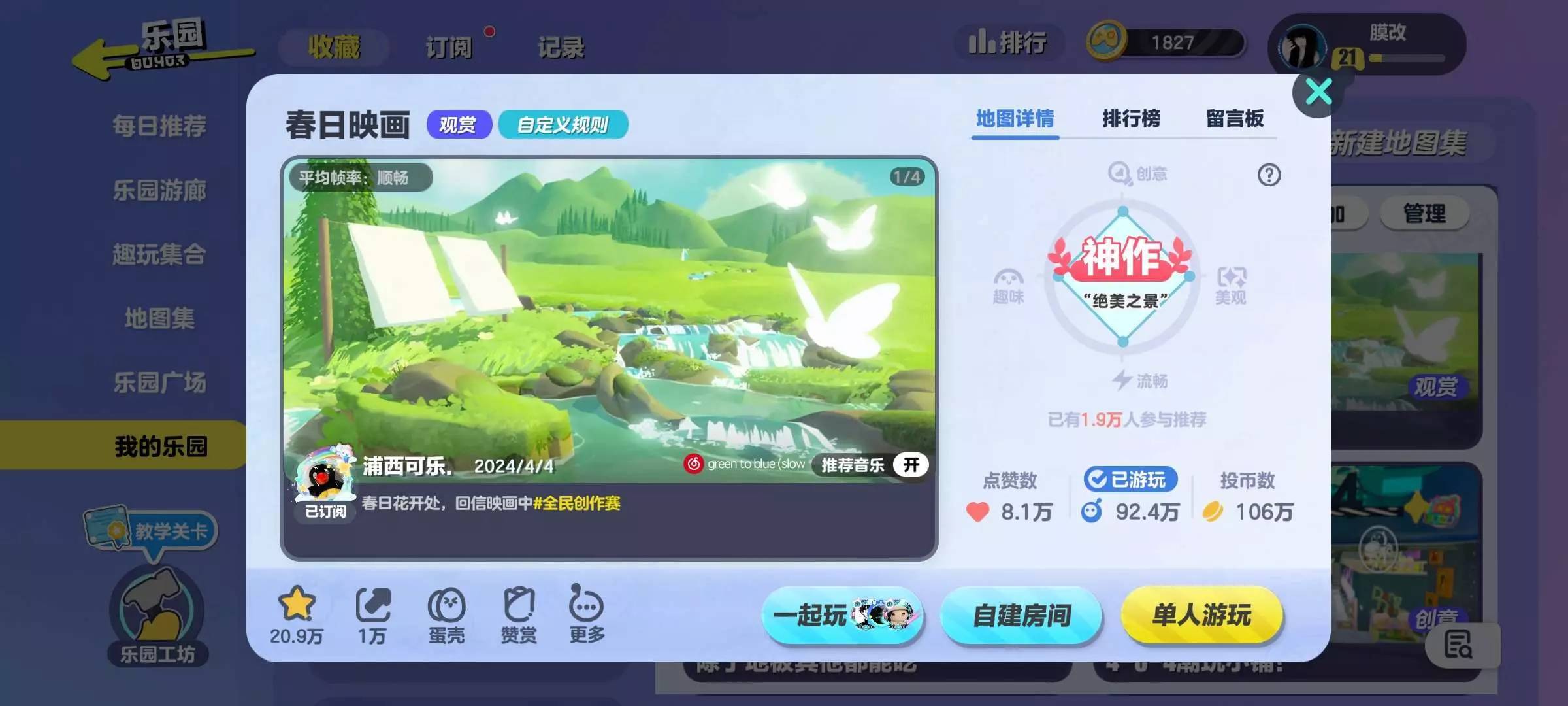 这个地图名字叫做《春日映画》是浦西可乐做的一个观赏图 春天感十足。