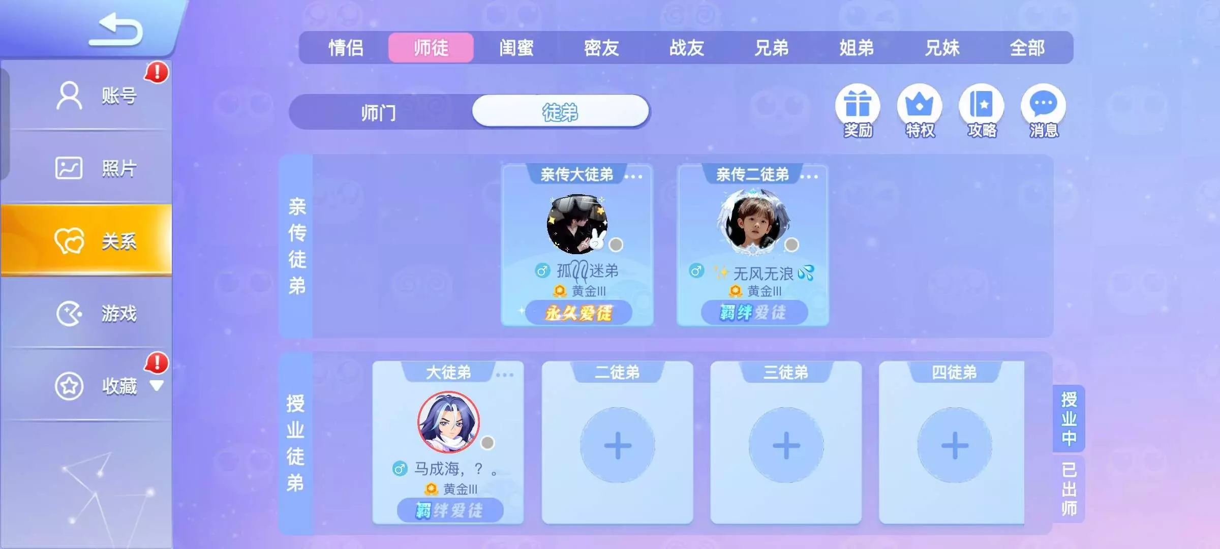 收徒弟要求常在线目前差三个徒,出师限定