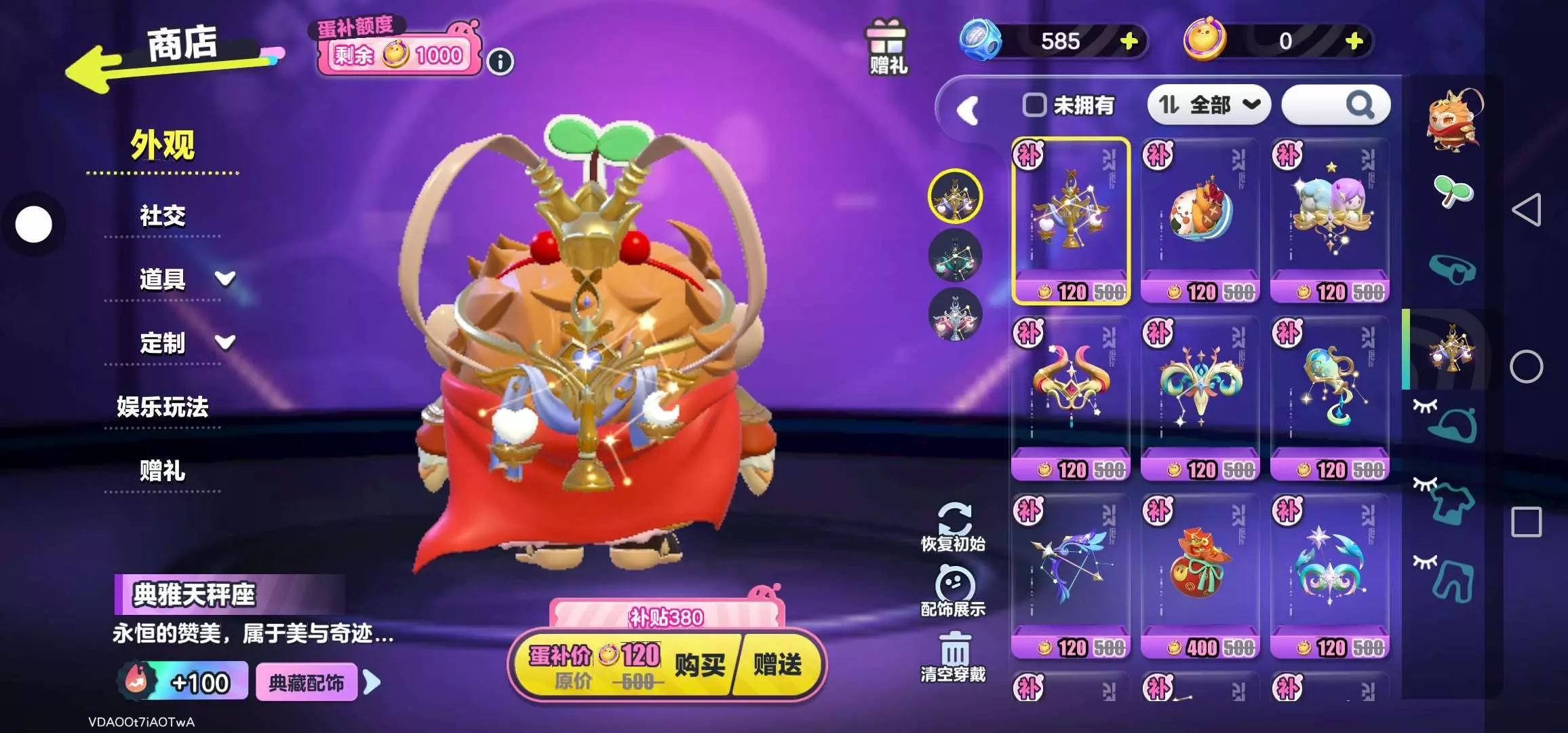 典雅天秤座:蛋币120+补贴额度380